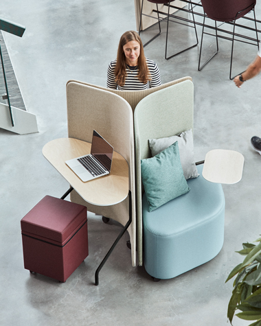 Akustikken forsvinder ofte fra det primære fokus, da kontorstolen trods alt virker afgørende. Mange produkter har integrerede akustikforbedringer, og I kan derfor let indtænke lydoptimering i jeres produktvalg.