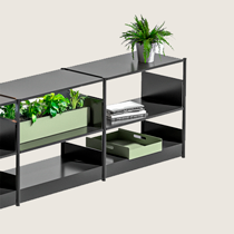 De +30 ringbind har I ikke stående længere og det meste forgår digitalt. Opbevaringsløsninger er stadig nødvendige, men løsninger der skaber opdelinger, grønne oaser og zoner er vigtige, så I undgår “død” plads.