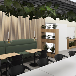 Vi indretter dagligt erhvervslokaler, og giver nye ideer via 3D skitser. Få skabt det gode arbejdsmiljø med en optimal indretning!