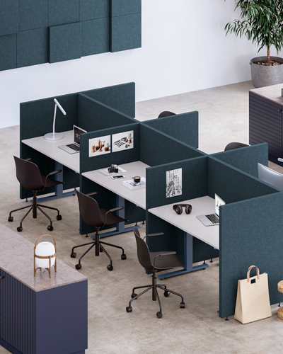 Når I planlægger indretning af kontor, vil I ofte stå med en klassisk udfordring: Hvor går grænsen mellem fælles og individuelt? For meget åbent skaber støj, men for mange afskærmninger kan lukke energien ude.