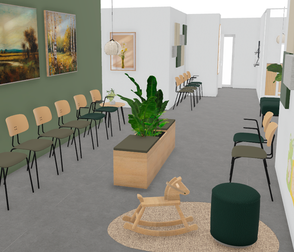3D tegninger giver jer mulighed for at se jeres ønskede stole, møbler og farvevalg i jeres lokaler.