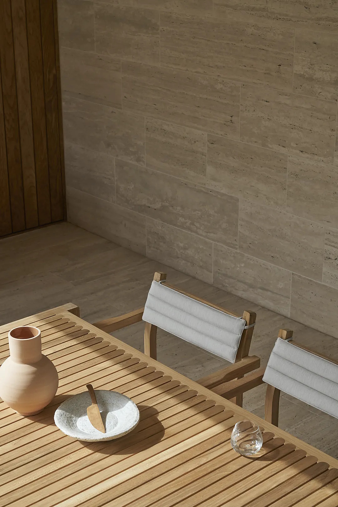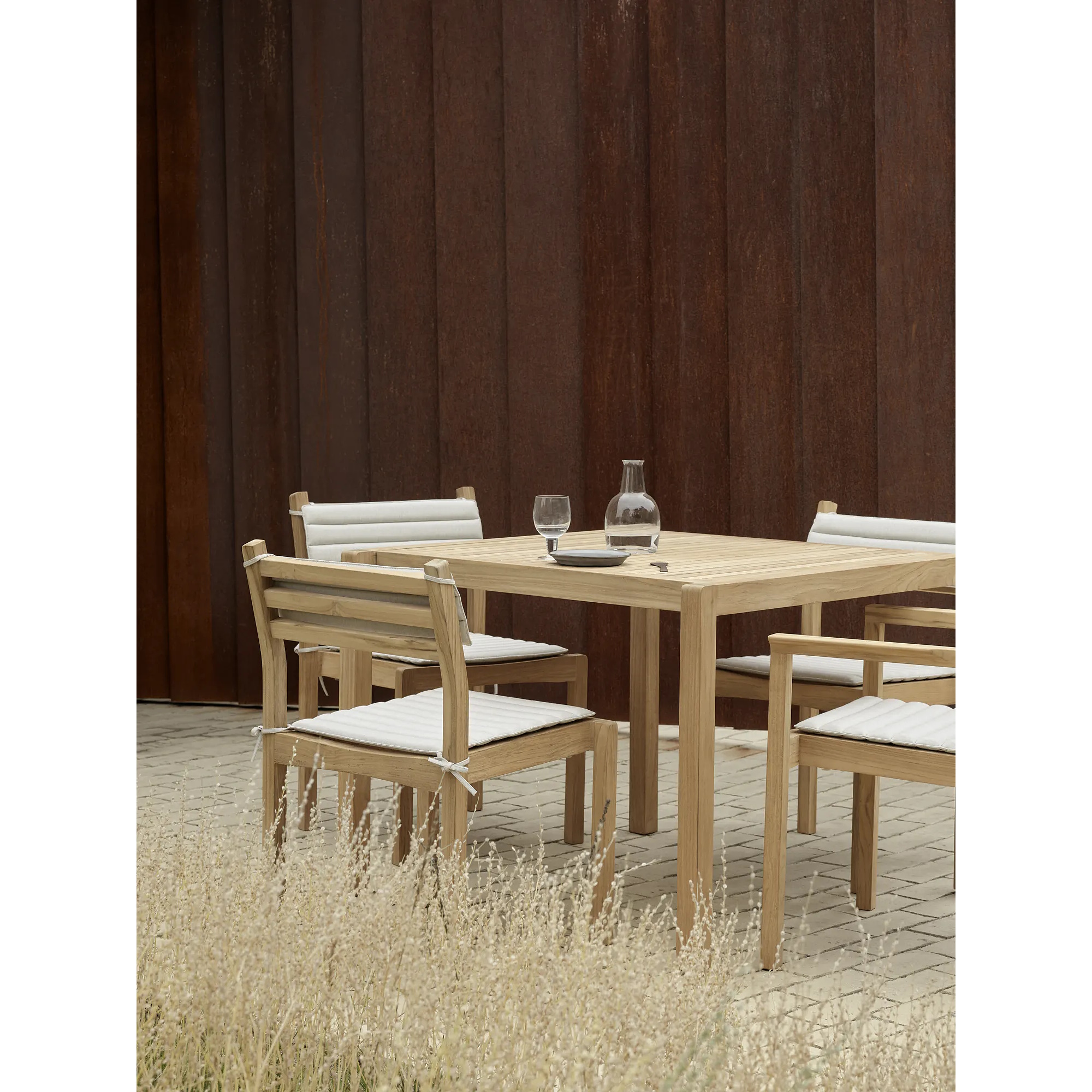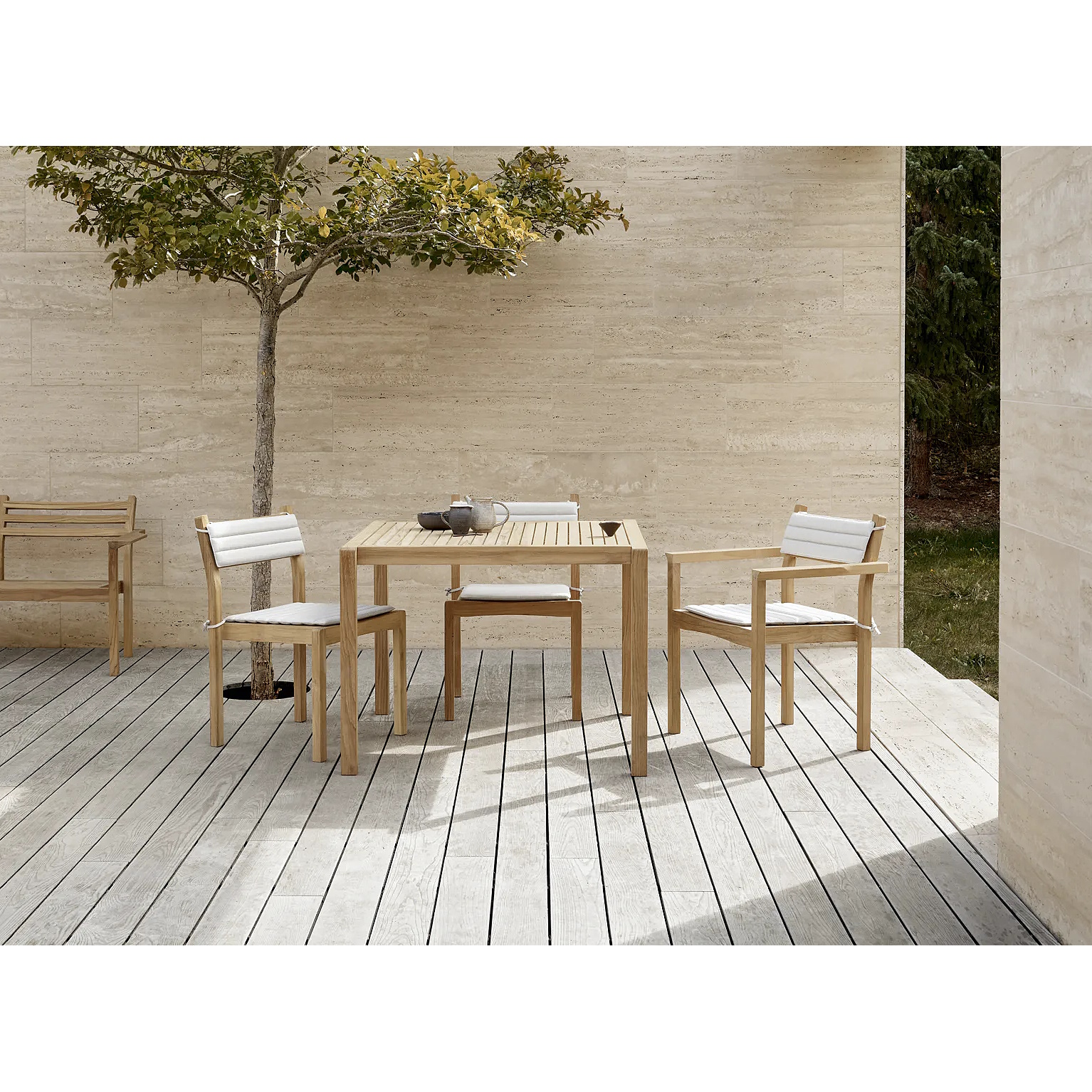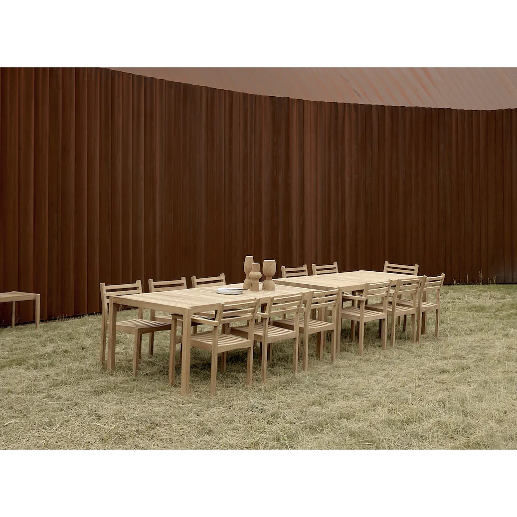 Bordene er en del af samme outdoor serie, designet af den prisvindende, danske arkitekt og designer Alfred Homann. Bordene er udarbejdet af ubehandlet, FSC-certificeret teaktræ og smukt udført med stringente linjer forenet med bløde, afrundede detaljer.