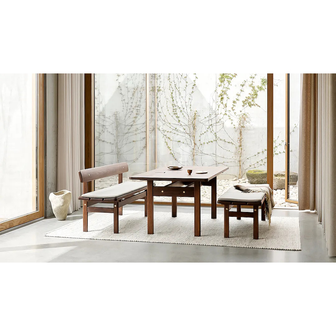 Børge Mogensens Asserbo bord er en del af Asserbo-serien, som er et tidløst bord- og bænkesæt. Bordet er oprindelig skabt i 1961, og er nu genudgivet i solid, mørkolieret, FSC®-certificeret eukalyptustræ med afrundede former og med synlige skruer i messing. Stilen trækker tydelige spor til Shaker-stilen, hvis kendetegn er deres simple og strømlinede formsprog.