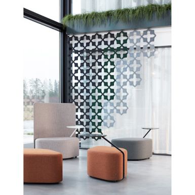 Piece Of Cake er et sjovt og billedskabende siddemøbel. De kageformede puffer kan sættes sammen i en gruppe på 6, der tilsammen danner en cirkel. Pufferne fås i to sædehøjder, der begge passer til Sit Around bordet. De fås i mange farver og tekstiler.