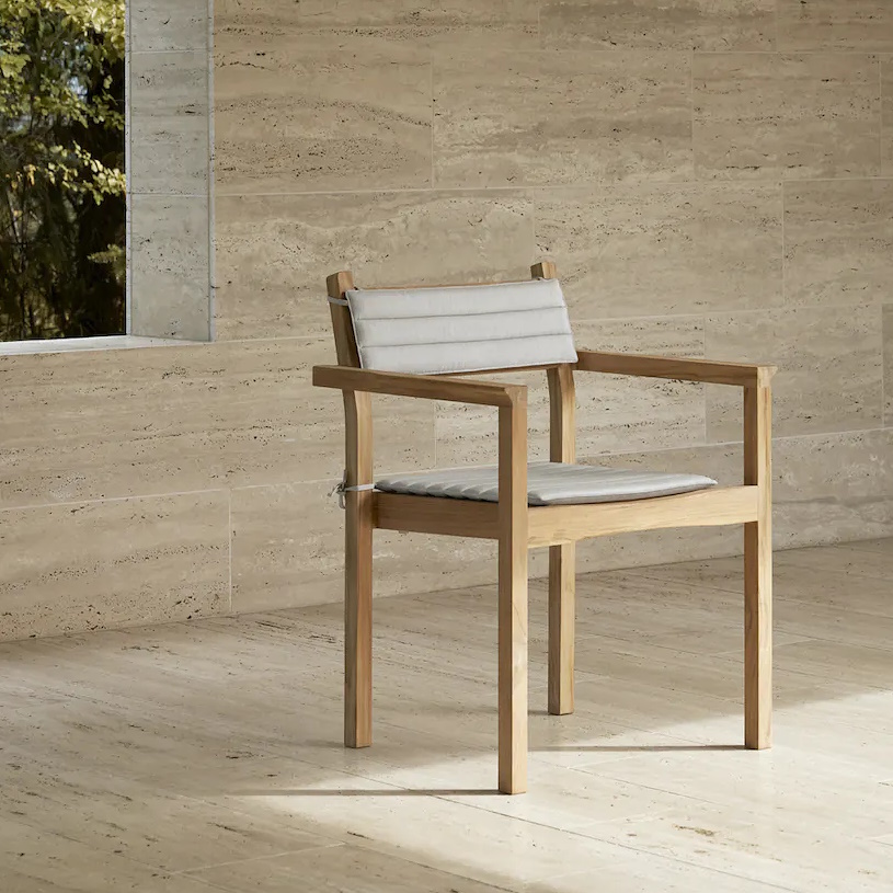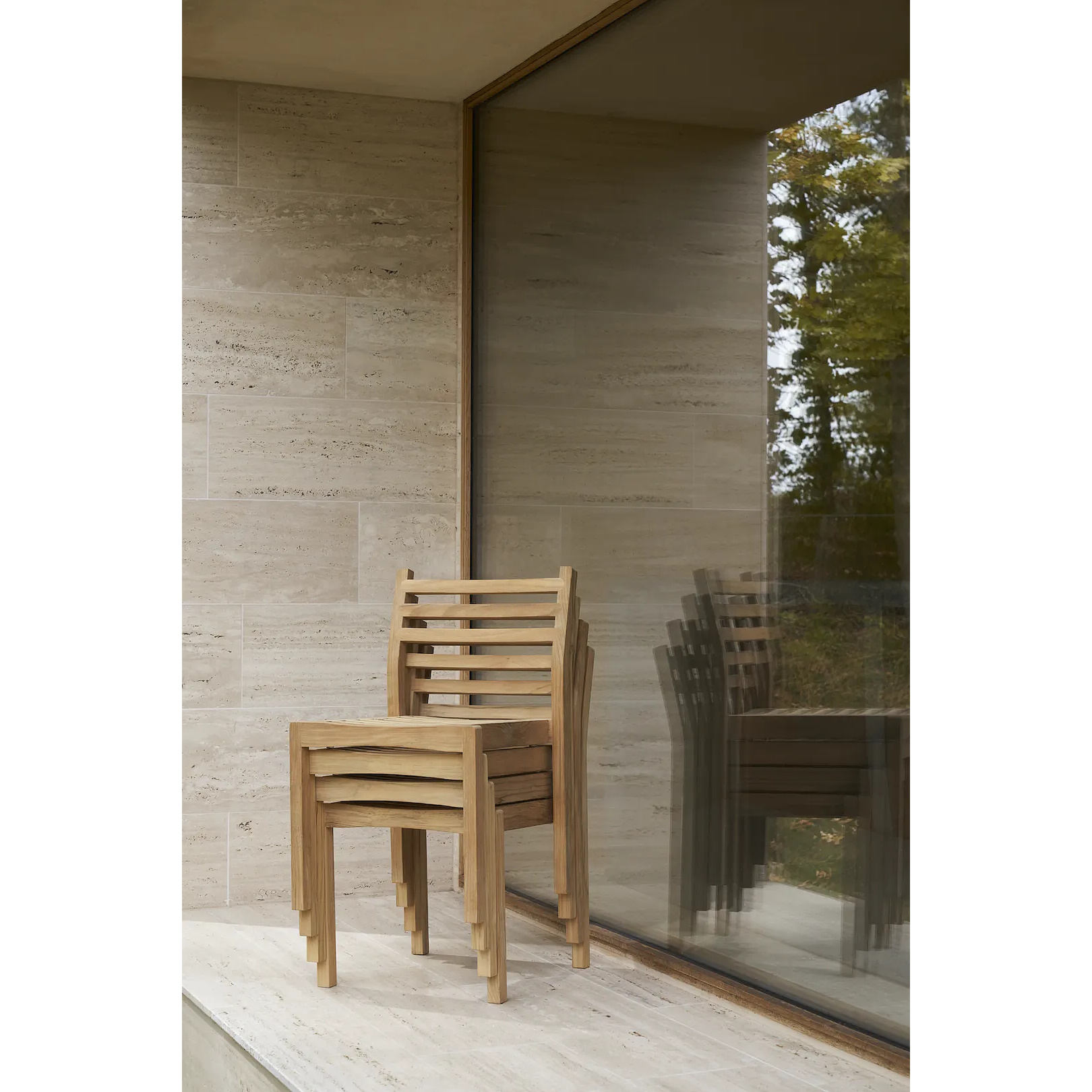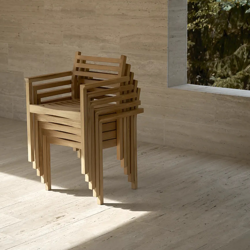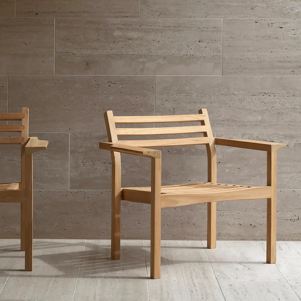 Disse stilfulde stole er designet af den danske designer Alfred Homann. De er en del af Alfred Homanns outdoor-serie, og er specifikt designet med en høj komfort kombineret med et naturligt og stilfuldt udtryk. Stolene er udarbejdet af ubehandlet, FSC®-certificeret teak og designet med stringente linjer elegant kombineret med bløde og afrundede detaljer.
