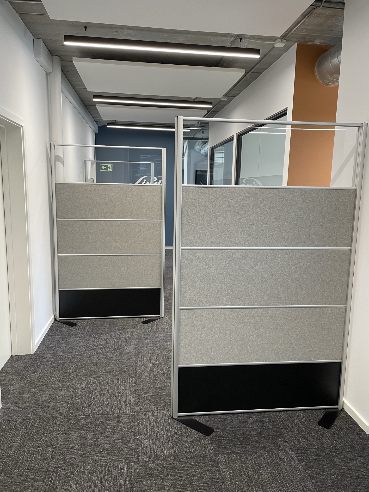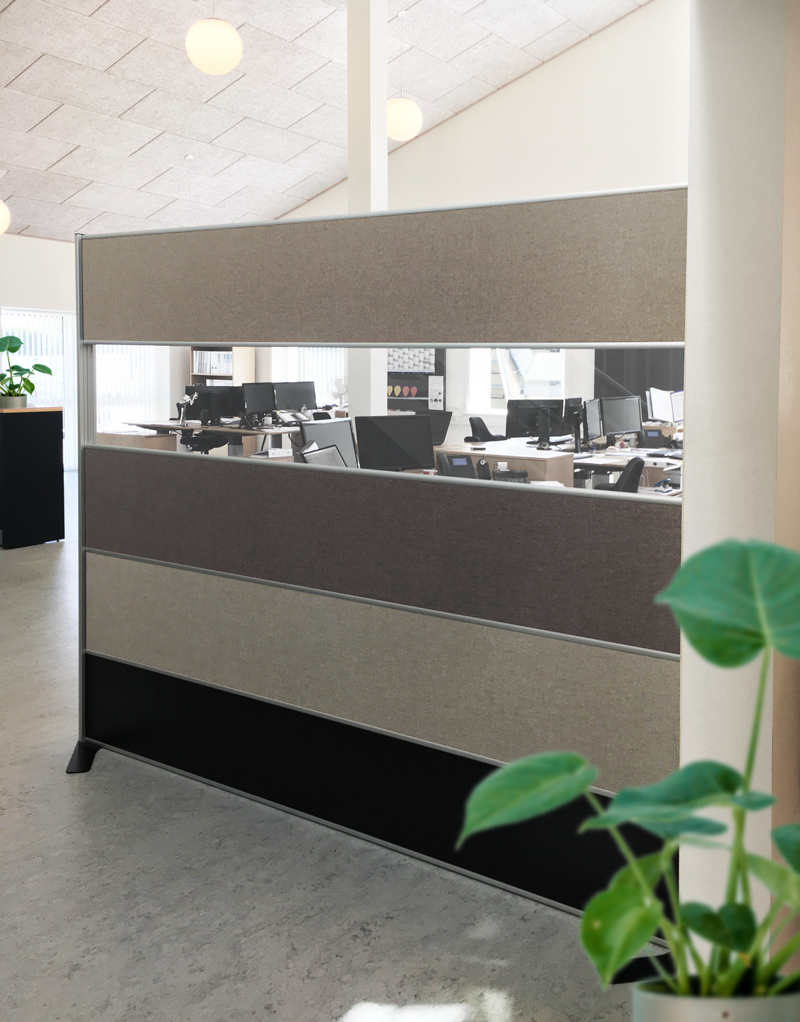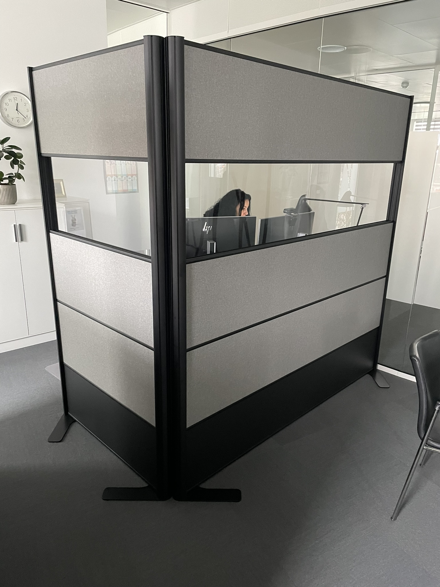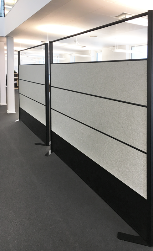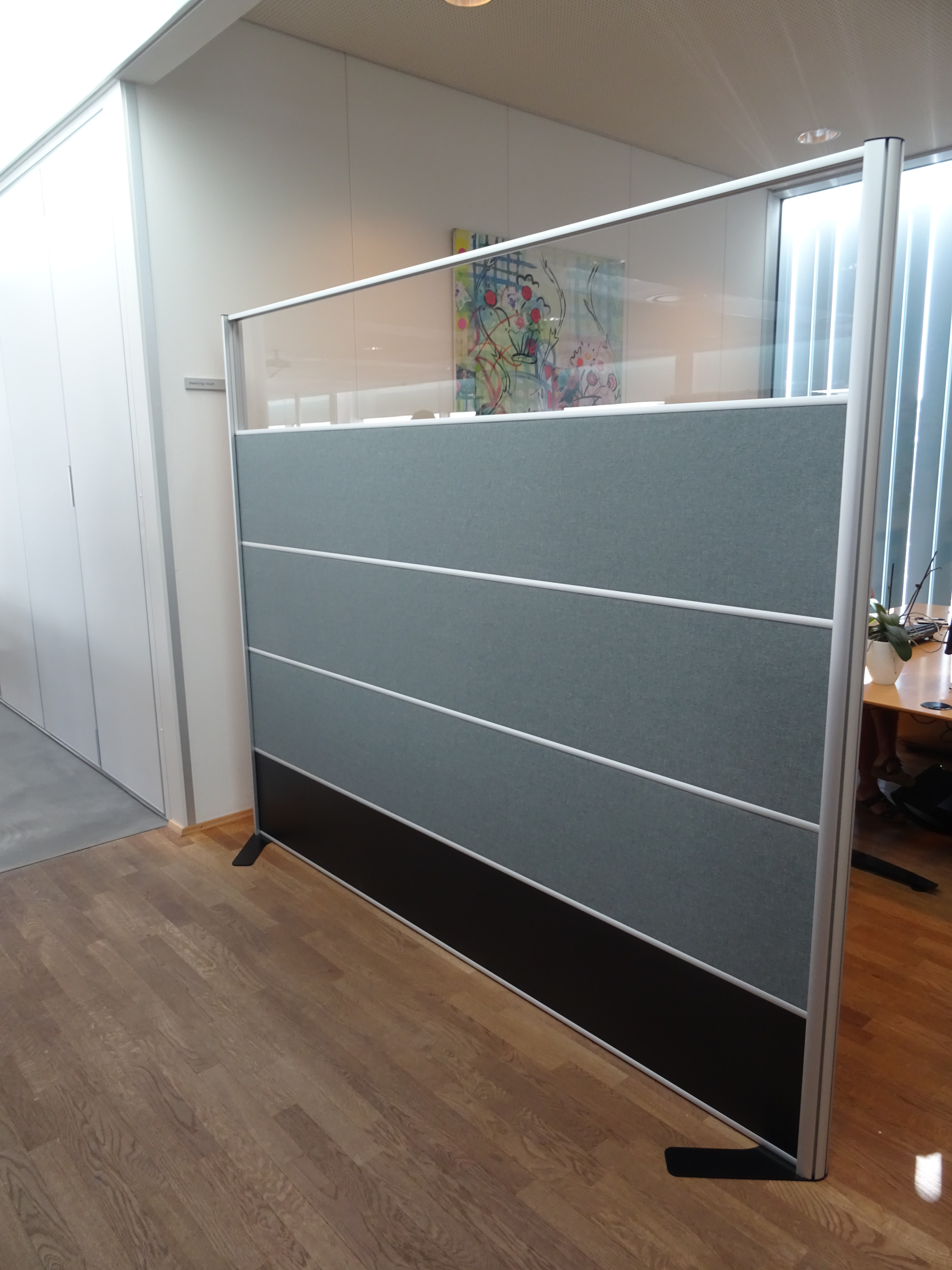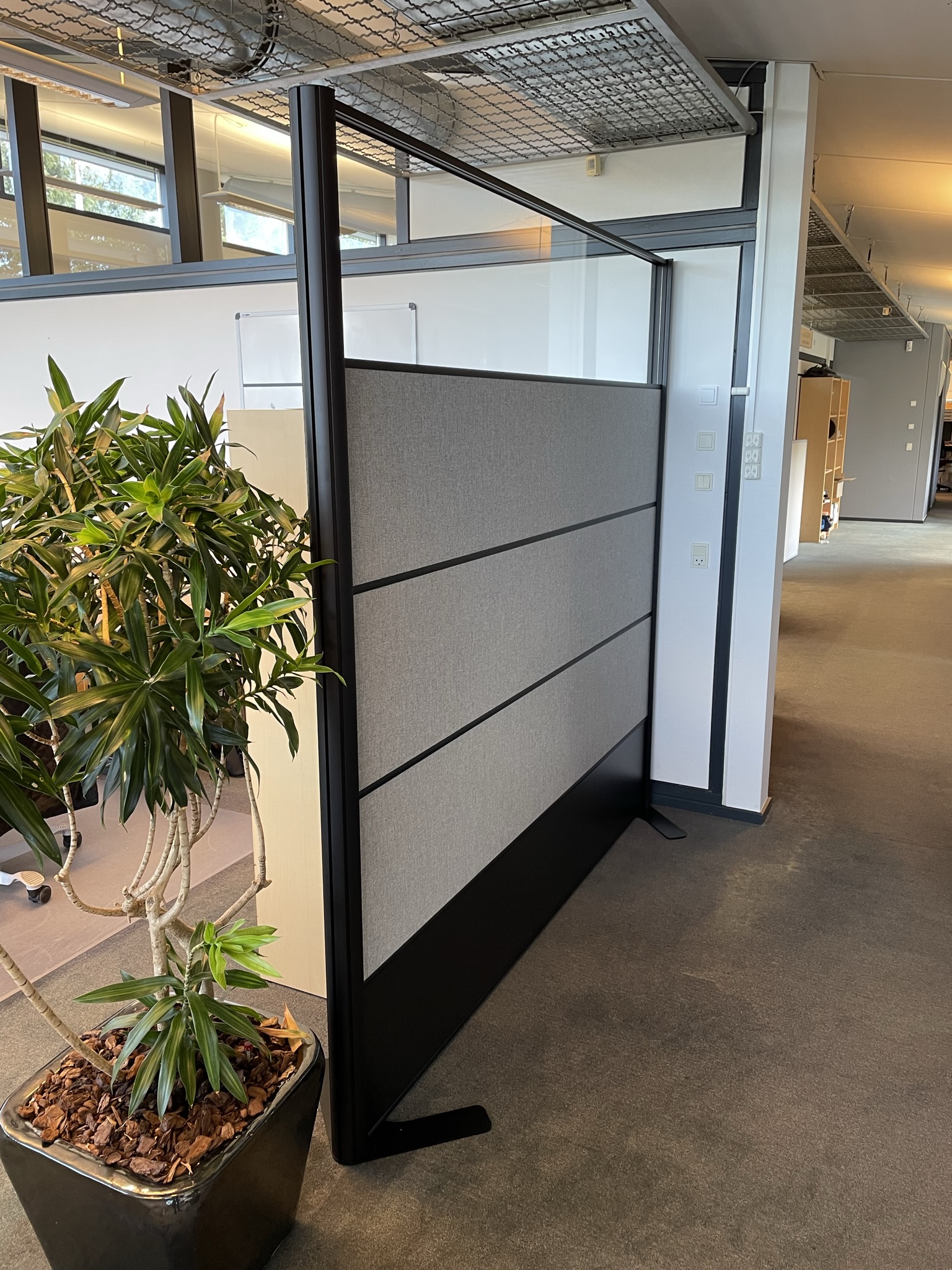 Flere skærmvægge kan sammenkobles i 45 og 90 graders vinkler, også med forskellige højder.