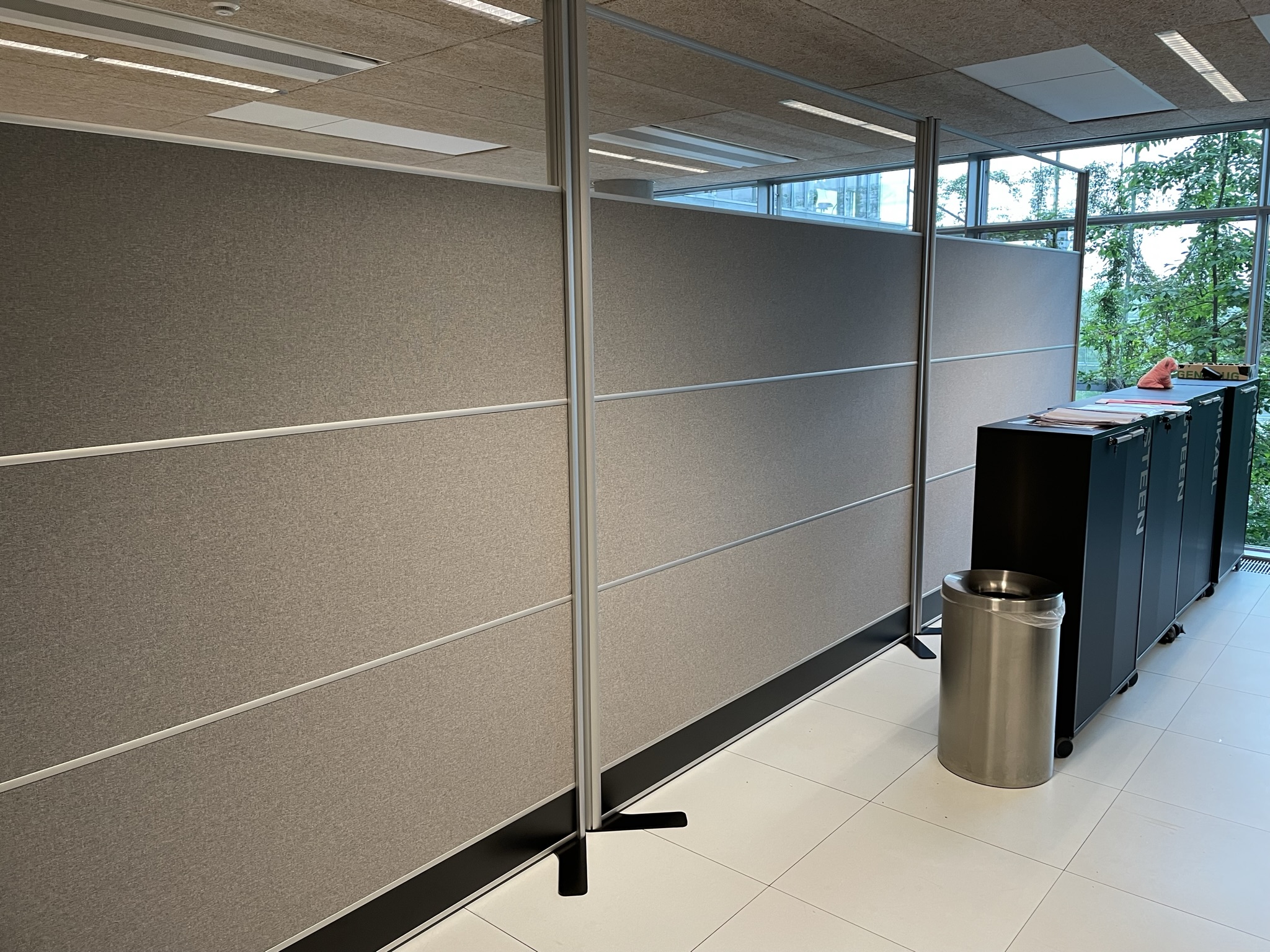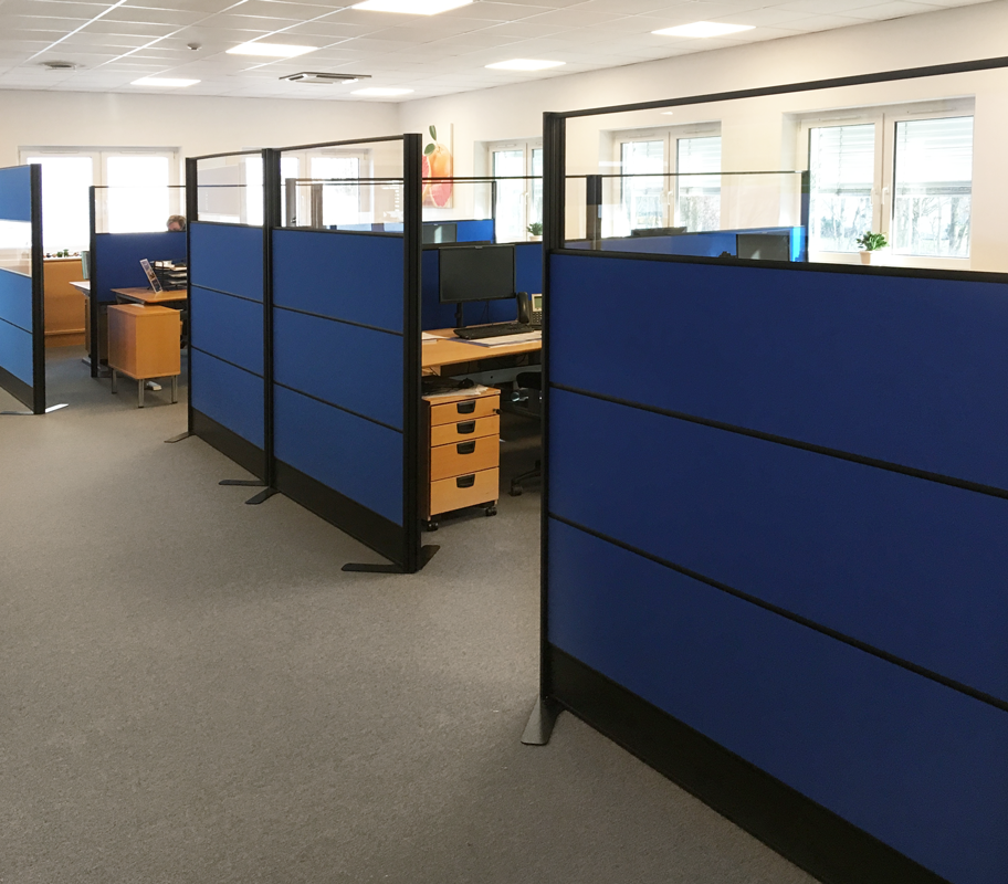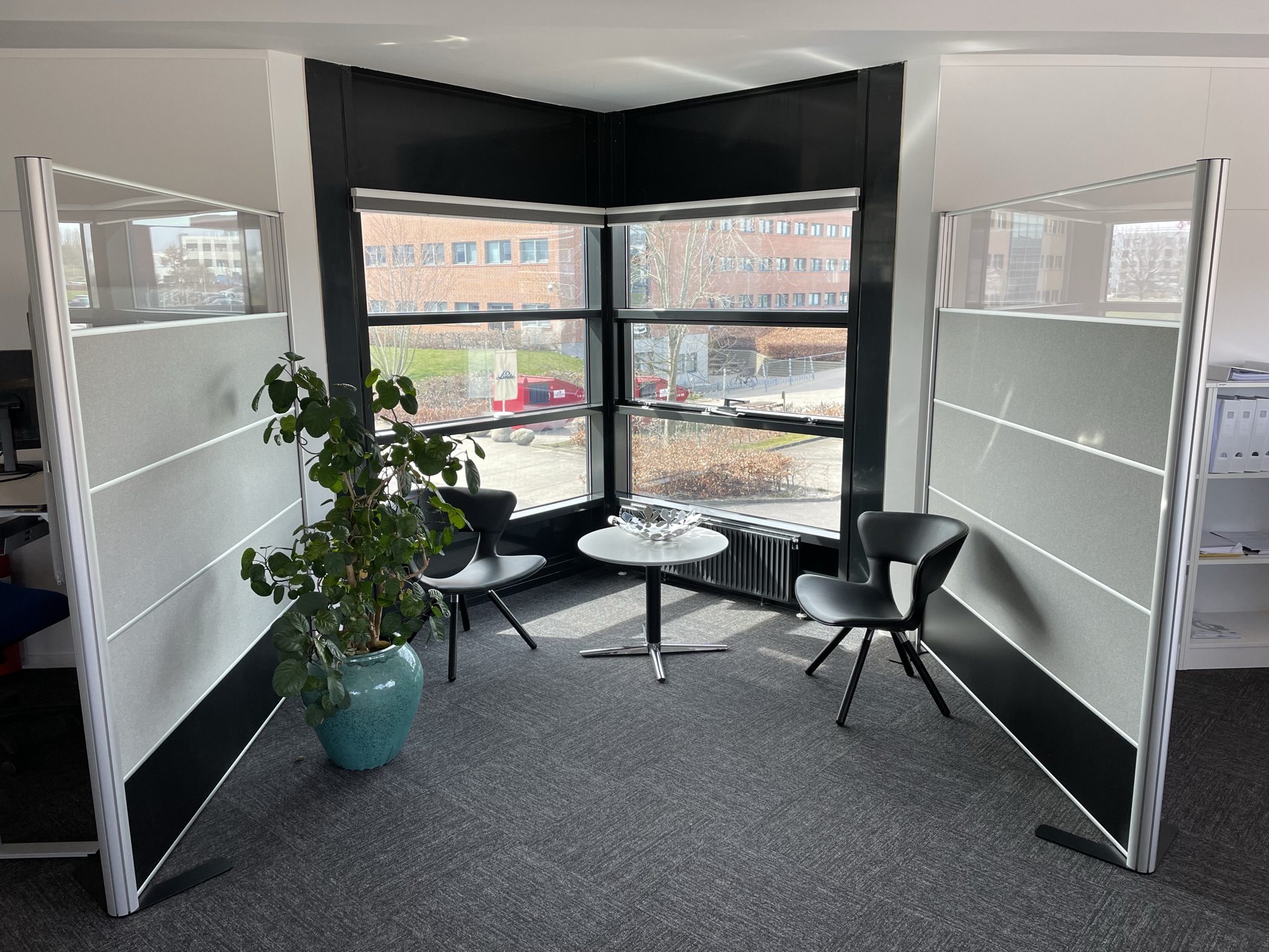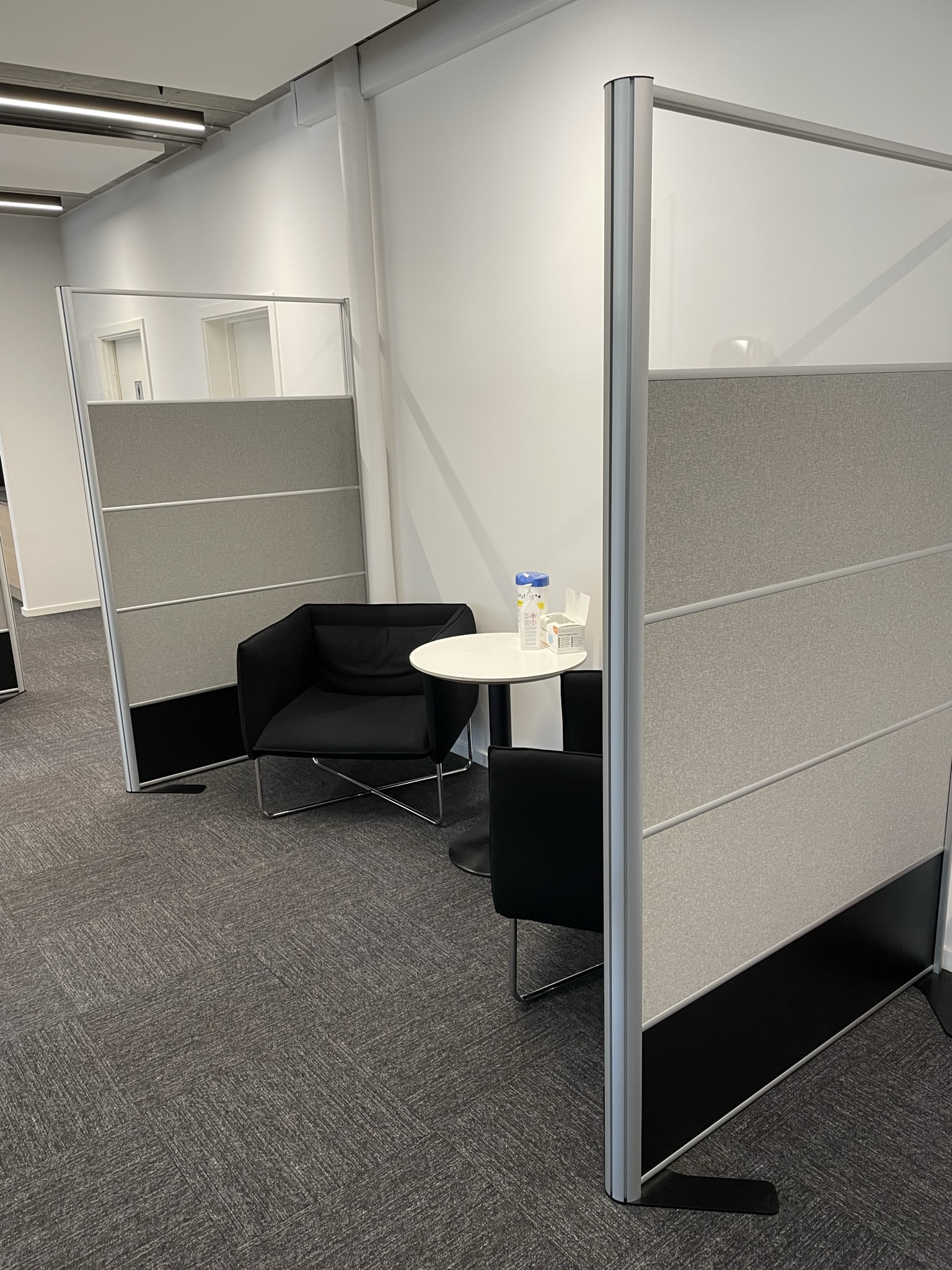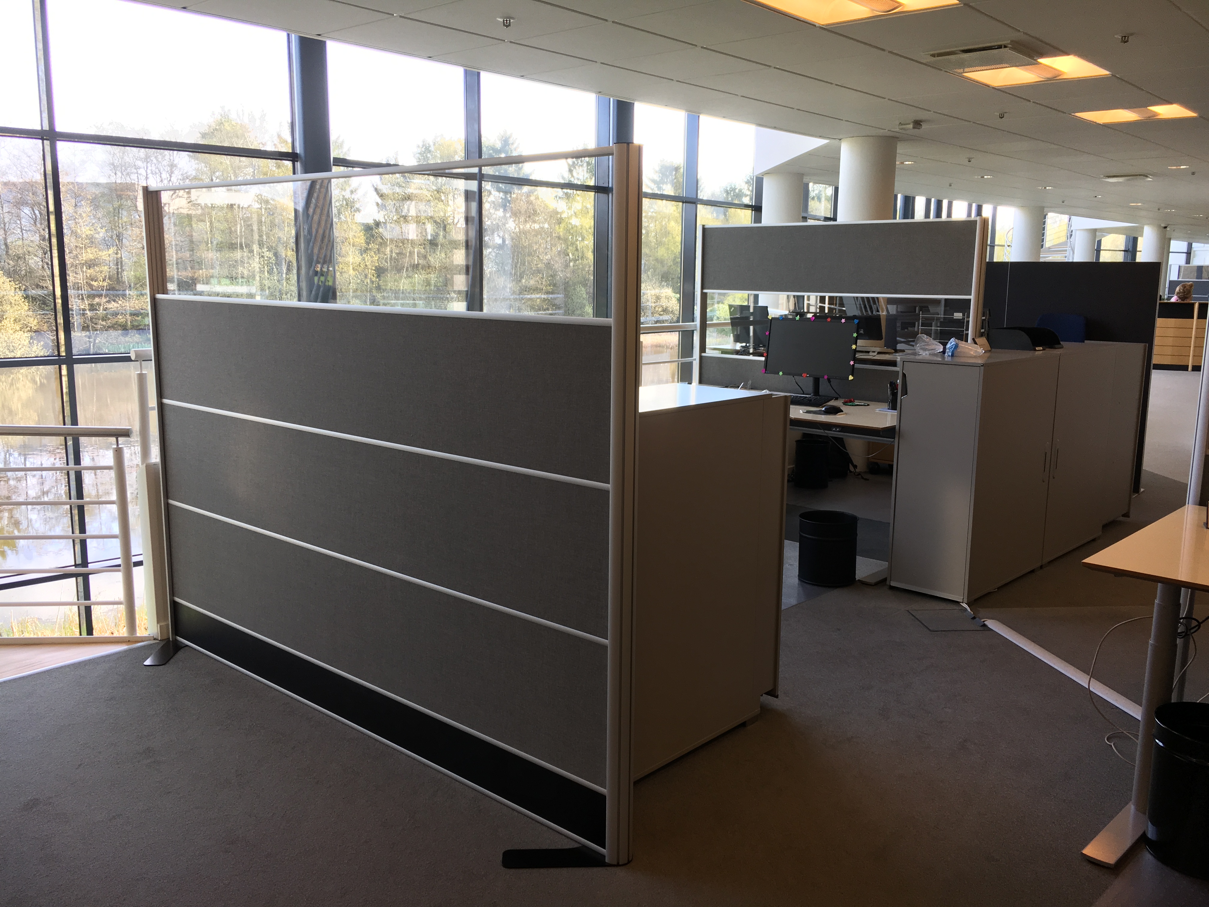 Flere skærmvægge kan sammenkobles i 45 og 90 graders vinkler, også med forskellige højder.