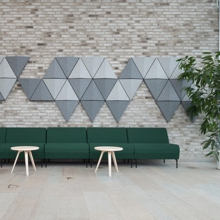 Anya Sebton har designet Bits Wall, som er et elegant vægpanel med et akustisk element. Bits Wall er trekantede moduler, lavet af formpresset polyesterfibre, som er beklædt med stof. Formen og de forskellige farver som modulerne kan beklædes med, giver mange alternativer for unik kombination og udtryk til det enkelte rum. Vægpanelet monteres med skjulte ophængningsbeslag, så anvendelsesmulighederne er mange. Bits Wall er velegnet til f.eks. store kontorlandskaber, foyer og foredragssale.