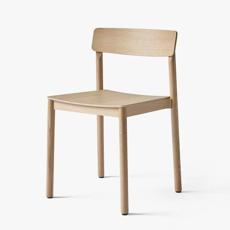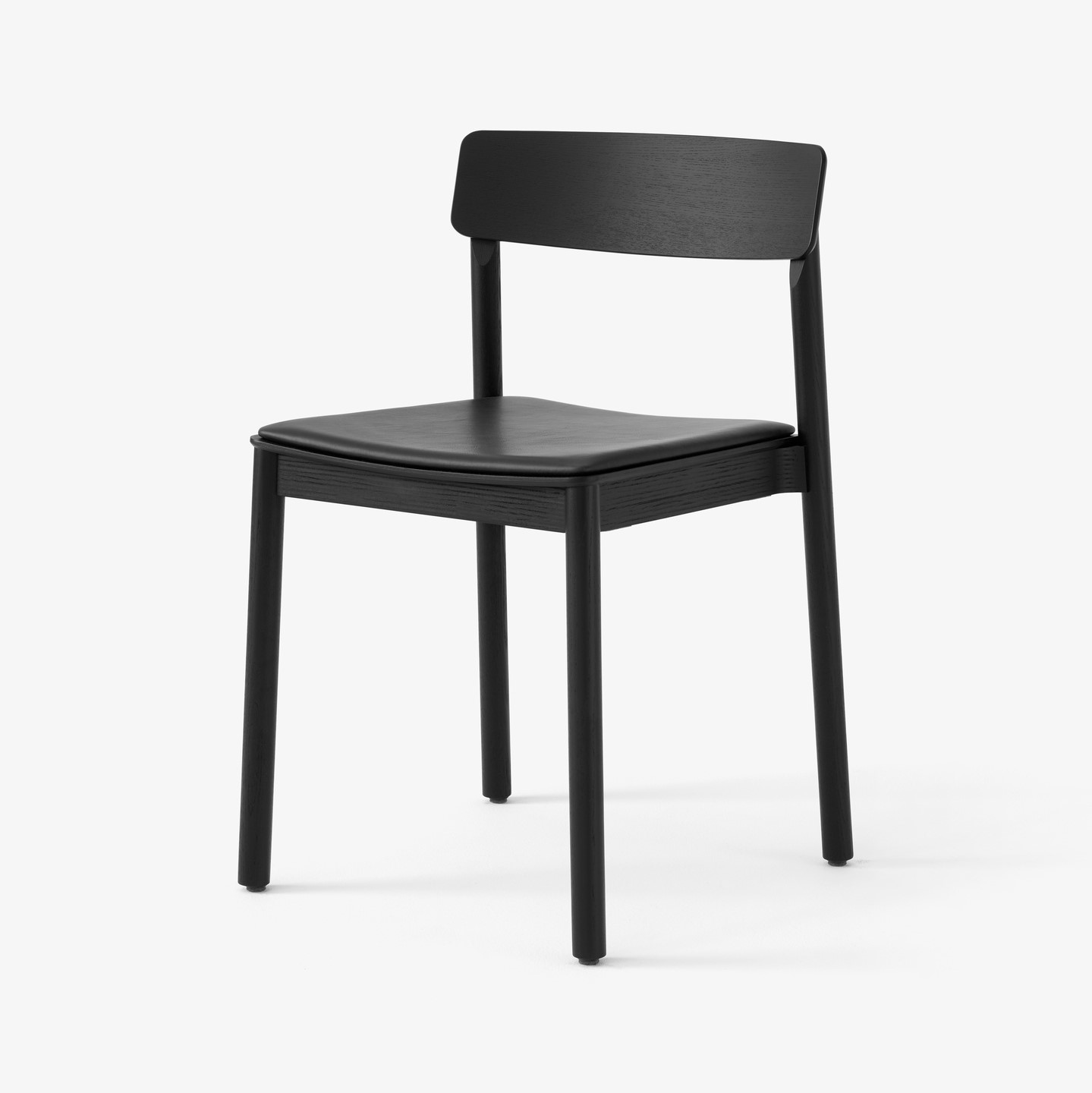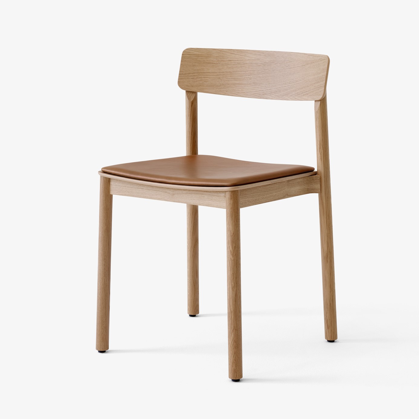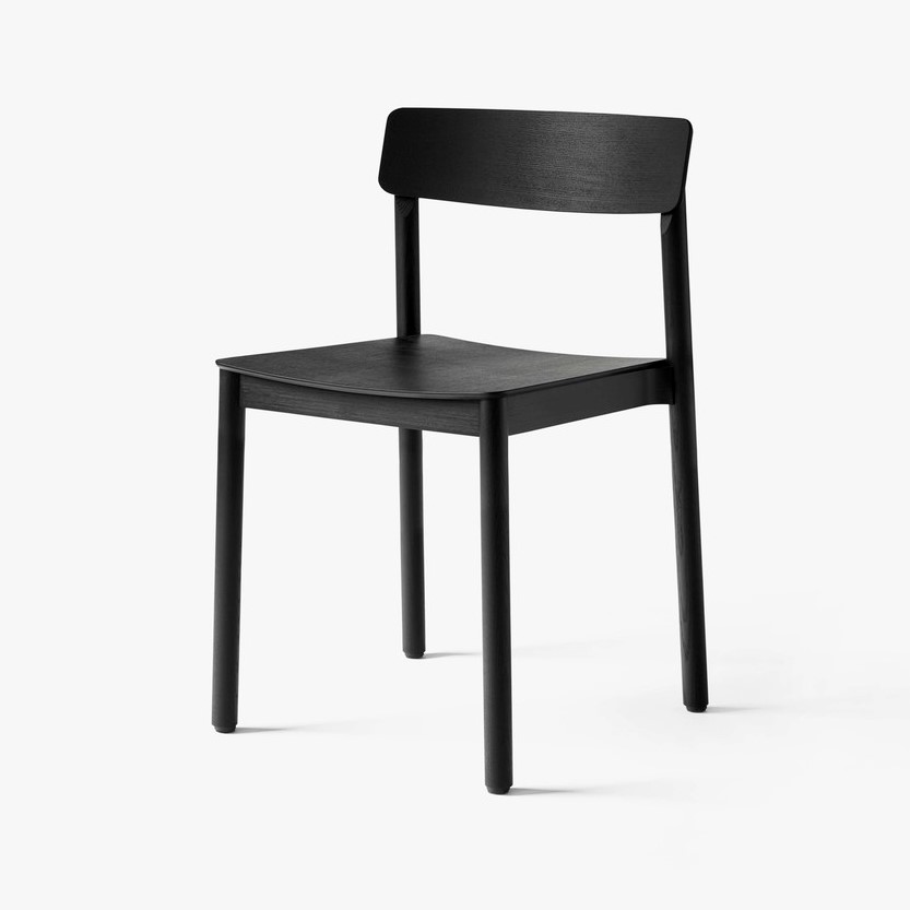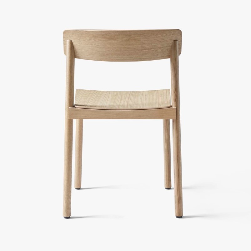 Stolen er skabt i massiv lakeret træ med ryg i formpresset finer og kan fås i eg, rødbrun eller sort. HR-skumsædet kan fås med polstring i sort silkelæder eller cognac silkelæder for det elegante look.