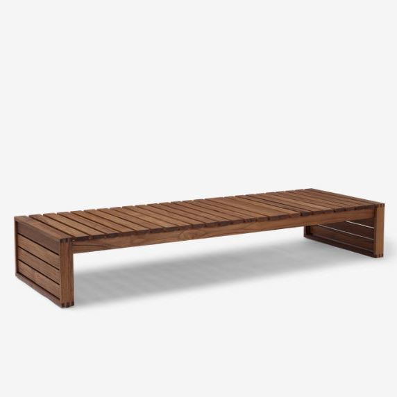 BK14 er en smuk, strømlinet og robust solseng designet i 1959 af danske Bodil Kjær. Solsengen er inspireret af kubismen og samtidens arkitektur, ligesom de øvrige møbler i Bodil Kjærs Indoor-Outdoor Serie. Alle møblerne i serien er fremstillet i massiv teak, der patinerer smukt over tid. Hynder af vejrbestandig Sunbrella kanvas kan tilkøbes.