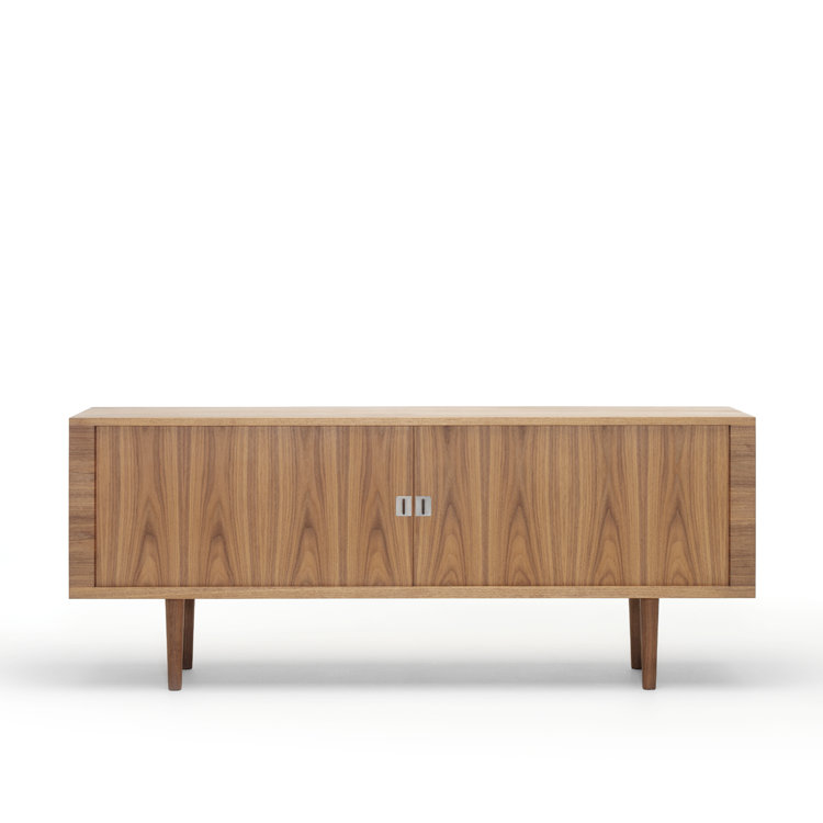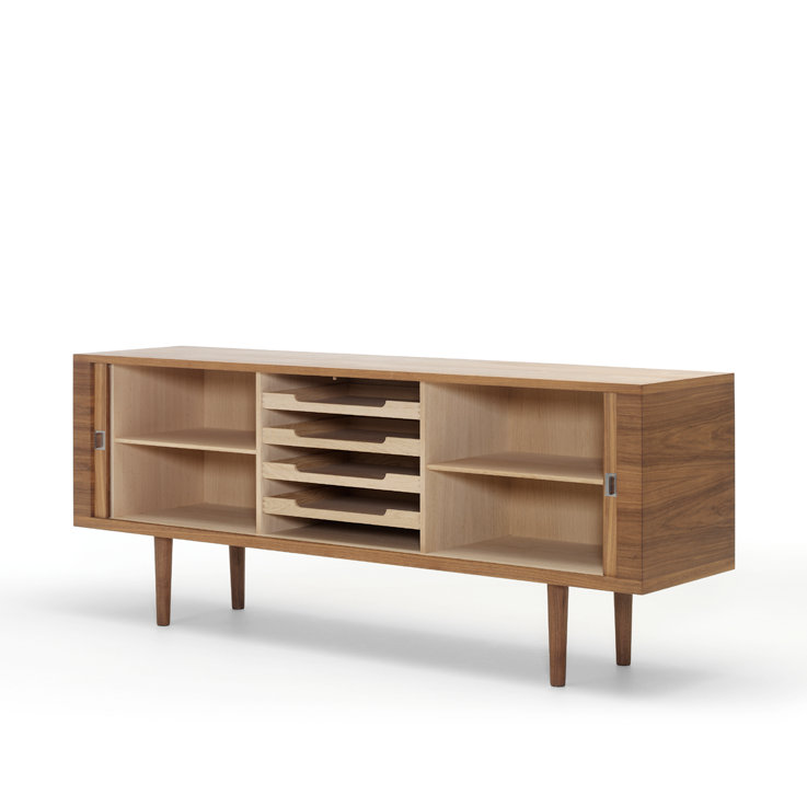 Wegners Credenza er baseret på Wegners originaltegninger fra 1959, og var oprindeligt en del af en serie på tre skænke. Skænken ser umiddelbart enkel ud, men den rummer en avanceret konstruktion med finerede jalousilåger, der skjules elegant, når skænken åbnes.