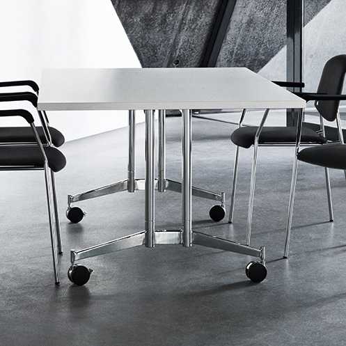 Contact er designet som et fleksibelt møbel, der er let at omarrangere. Bordet kan forsynes med hjul, og bordpladen kan let klappes op, så bordet kan opbevares uden at optage unødig plads. Til stationært brug leveres Contact med glidere som alternativ til hjul. Pga. de dobbelte ben er bordet utroligt stabilt, der fungerer fint som et nydeligt og indtagende mødebord.