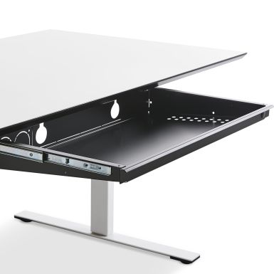 Elegant og diskret vandret CPU-holder, der enkelt og let monteres under bordpladen, og bliver en integreret del af arbejdsstationen. CPU er en perfekt løsning til at skabe mere plads og mere overblik på dit skrivebord. Holderen fås i to størrelser, der begge er let justerbare, så de passer til lige præcis din computer. Den fås desuden i forskellige farver. Max belastning: 20 kg.