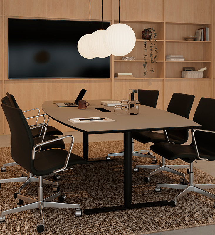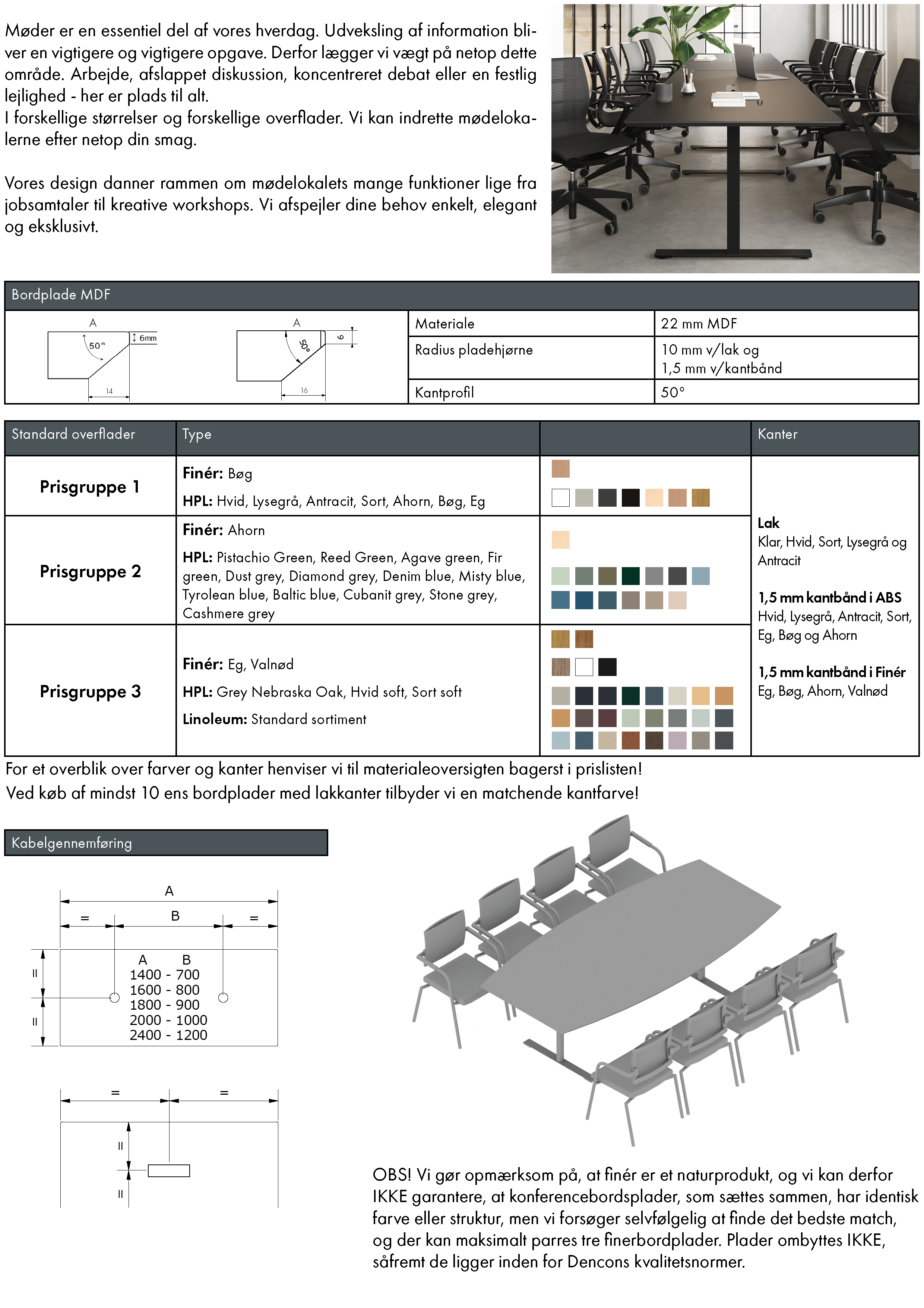 Dencons konference- og mødeborde er perfekte til dynamiske møder og konventionelle konferencer. Bordpladerne fås i forskellige størrelser og former, og findes i varianterne finér, linoleum og laminat.