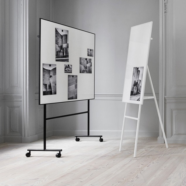 One Dobbeltsidet whiteboard, designet af Christian Halleröd, er en enkel og klassisk skrivetavle på hjul, med stålkeramisk, magnetisk overflade. Som navnet antyder, kan tavlen anvendes på begge sider. Både ramme og stativ kan fås i sort eller hvid, og bagsiden er lakeret i samme farve som stativ og ramme. 2 ud af 4 hjul er låsbare. Der medfølger justerbare blokholderkroge. One Dobbeltsidet whiteboard er praktisk og tidløs, og er velegnet til møde- og konferencelokaler, kontorer og undervisningslokaler.