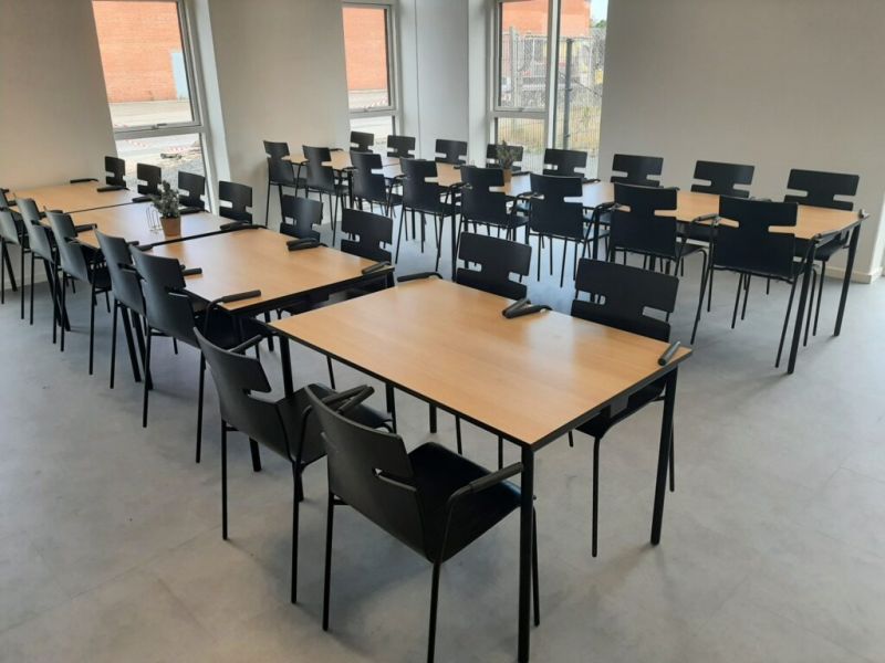 Tjek en demonstration af bordenes sammenfoldning ud.