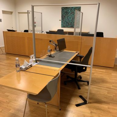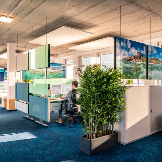 EFFEKT EcoSUND Pendent paneler nedhængt fra loftet, fremstilles i tre standardstørrelser, og har en tykkelse på 50 mm for god lydabsorbering. Panelet ophænges i medfølgende wirer, der danner en væg fra loftet. EFFEKT EcoSUND Pendent er en god løsning, der effektivt reducerer lydspredning i rummets længderetning, og som samtid virker rumopdelende.