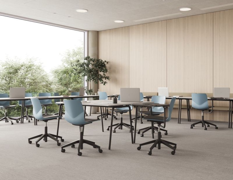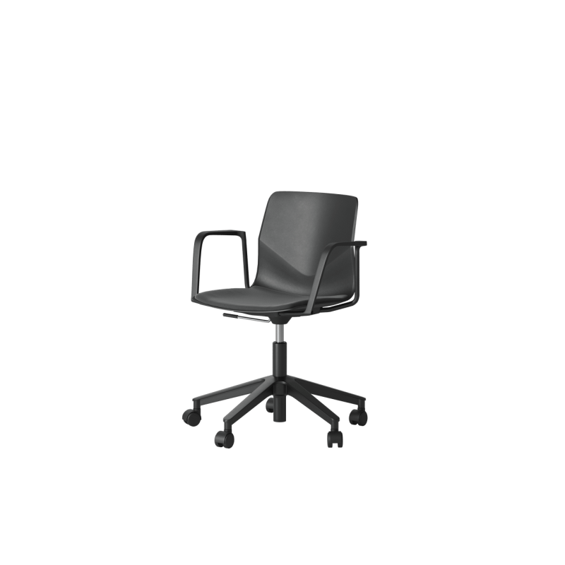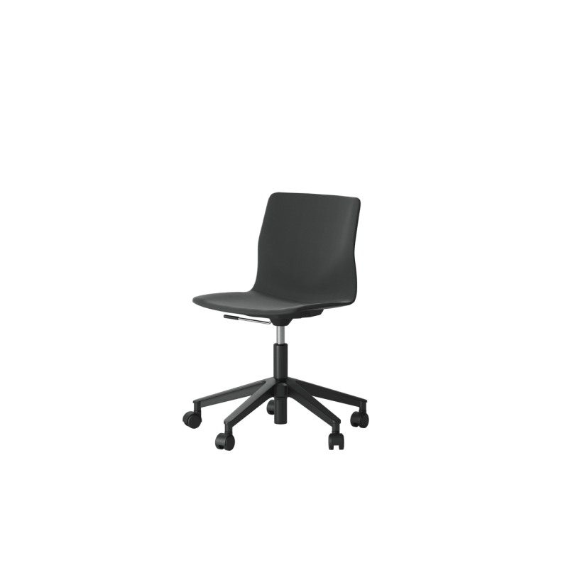 FourSure 66 er en elegant og robust stol på hjul med indbygget komfort via sin unikke V-form, fleksibilitet i ryggen og organiske former, samt indbyggede kipfunktion i sædet. Four Sure fås med gaslift, 5-stjernefod, hjul eller glidesko, og kan monteres med Inno®tab skrivearm.