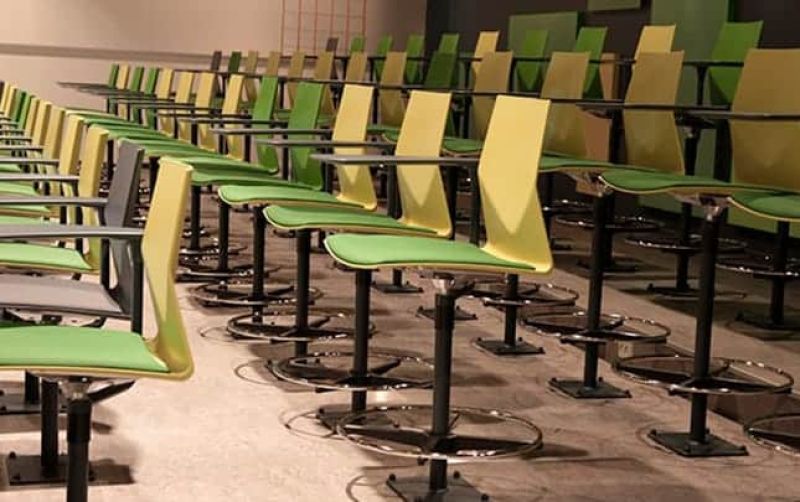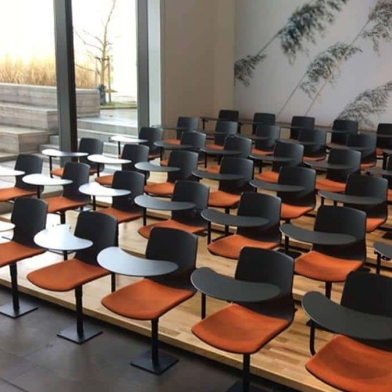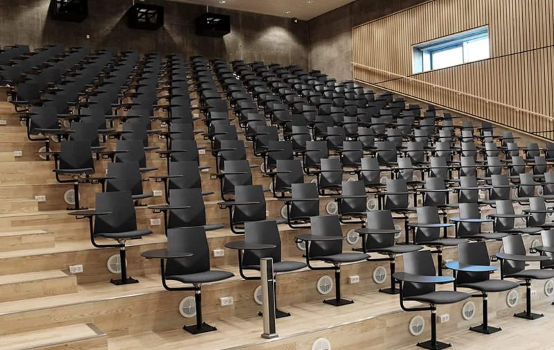FourSure Audi er en fastmonteret, elegant og drejbar auditoriestol med indbygget komfort via sin unikke V-form, fleksibilitet i ryggen og valgfri gaslift.