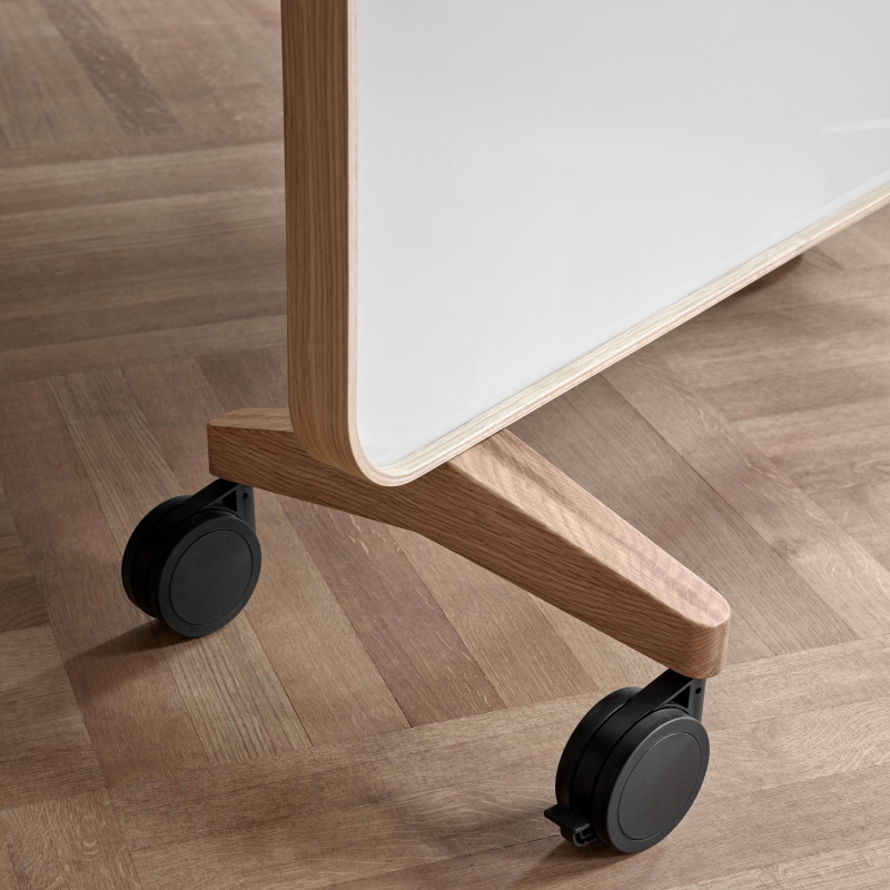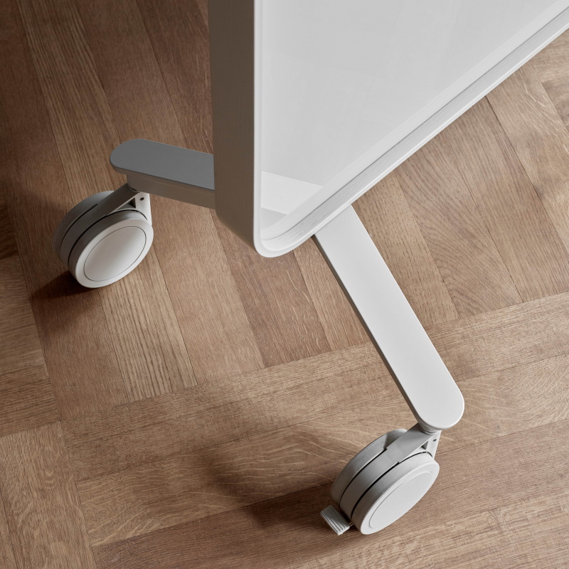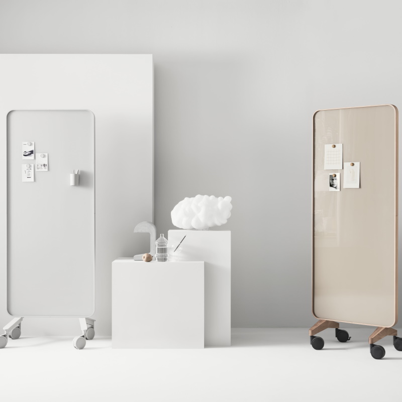 Den smarte dobbeltsidet glastavle i hærdet optisk glas er designet af Halleroed og Matti Klenell. Frame mobil har bløde afrundede rammer, er magnetisk og fås i 2 størrelser med hjulsæt i enten sort eller grå og ramme eller fødder i massiv eg og egeramme. Den kan fås i flere flotte farver og kan anvendes i mødelokalet, studiemiljøet, konferencerummet eller kursuslokalet.