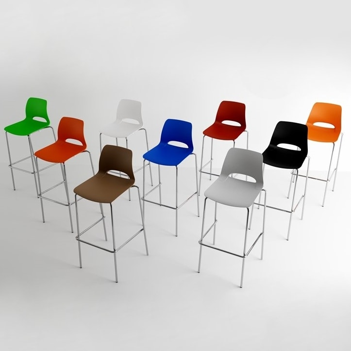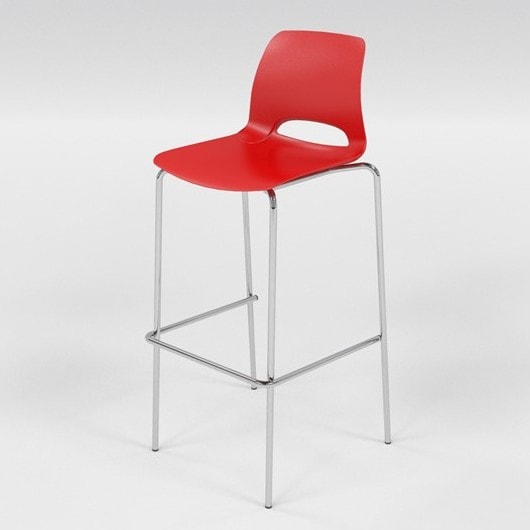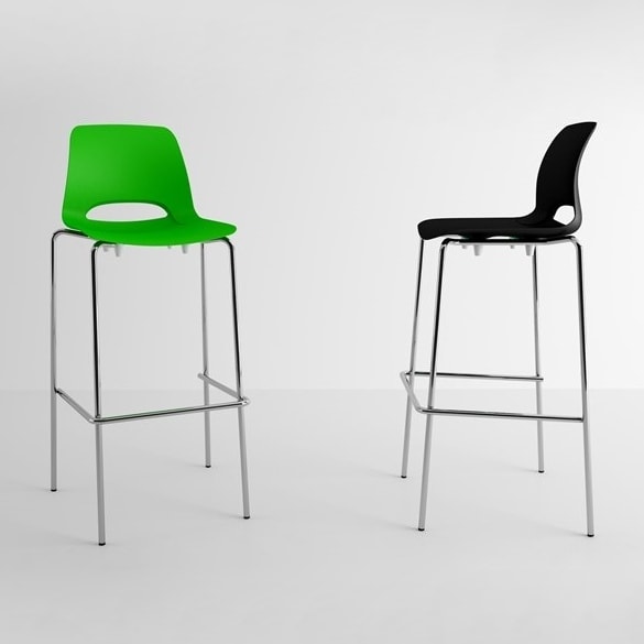 Frigg barstol består af en skal i polyuretan, der fås i mange forskellige flotte farver og stellet er i Ø16mm forkromet stålrør. Barstolen fås også med armlæn som tilkøb.