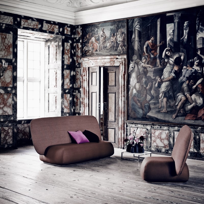 Halo sofasystemet er sammensat af forskellige rygstøtteelementer, som giver muligheder for at variere fra en enkeltsædet lænestol i siddeopstillinger til en 3-personers sofa. Fordelen er den meget store rygstøtte, der yder god komfort, og som samtidig giver en høj privatsfære. Projektet hedder Halo fordi ryg- og hovedstøtten minder om en glorie. Sofaen fås i mange stofkvaliteter og flotte farver.