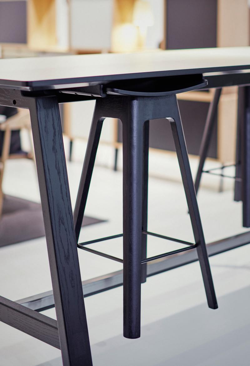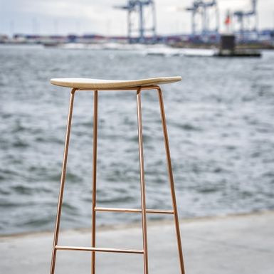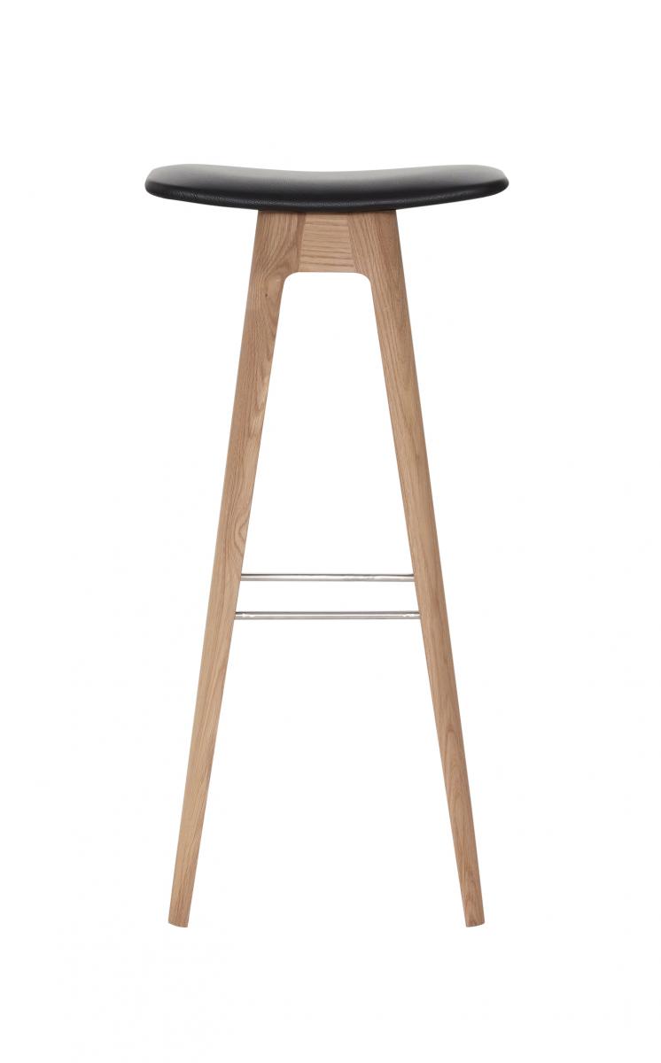 Der er mulighed for at vælge mellem polstret sæde i sort eller brunt læder samt fire polstret farver. Stolen har endvidere den unikke detalje, at der er mulighed for ophæng på højbord.