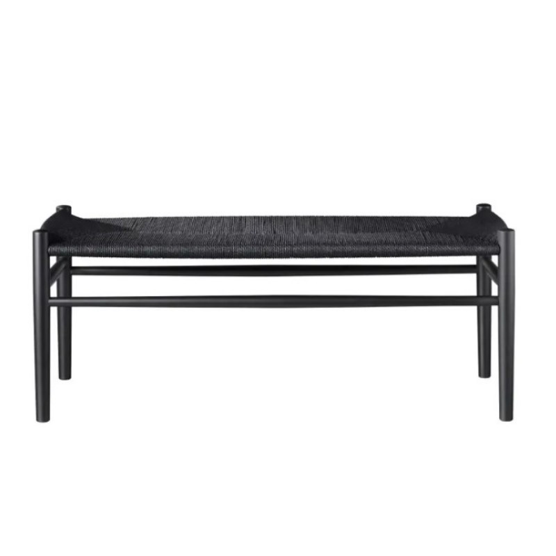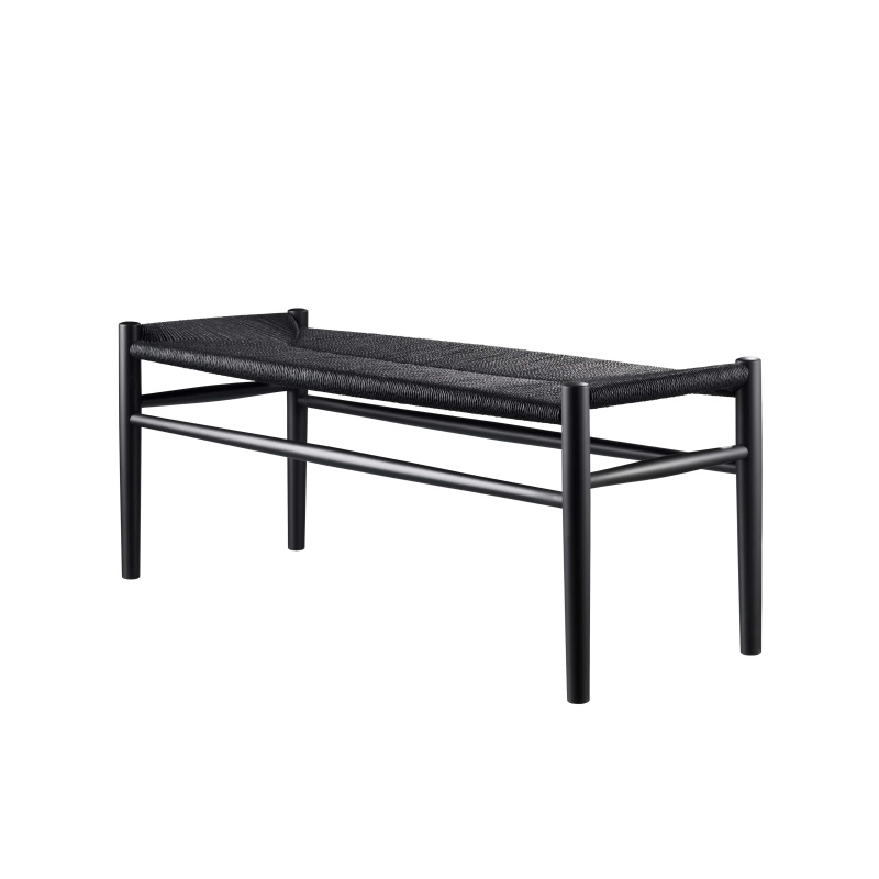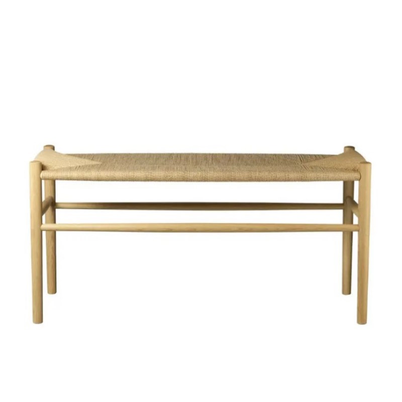 Disse tre forskellige bænke er en del af en serie af klassiske siddemøbler i massiv ege- og bøgetræ med sæde af papirflet, som arkitekten Jørgen Bækmark designede til FDB møbler.
