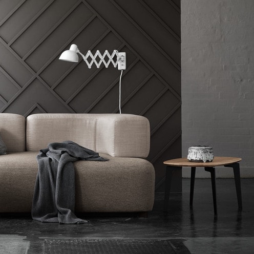 Kaiser idell™ er originalt Bauhaus-design, og serien er bygget op omkring et verdenspatenteret kugleled (1930) samt den karakteristiske lampetop med prægningen - "ORIGINAL KAISER-idell™". Lamperne er fremstillet i stål og messing. Skærmene er hånd-lakerede i højglans eller mat, og de forkromede dele af lampen består af hånd-poleret og sølvloddet messing. Væglampen er mere kendt som sakselampen.
