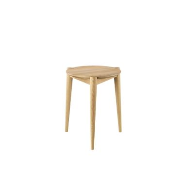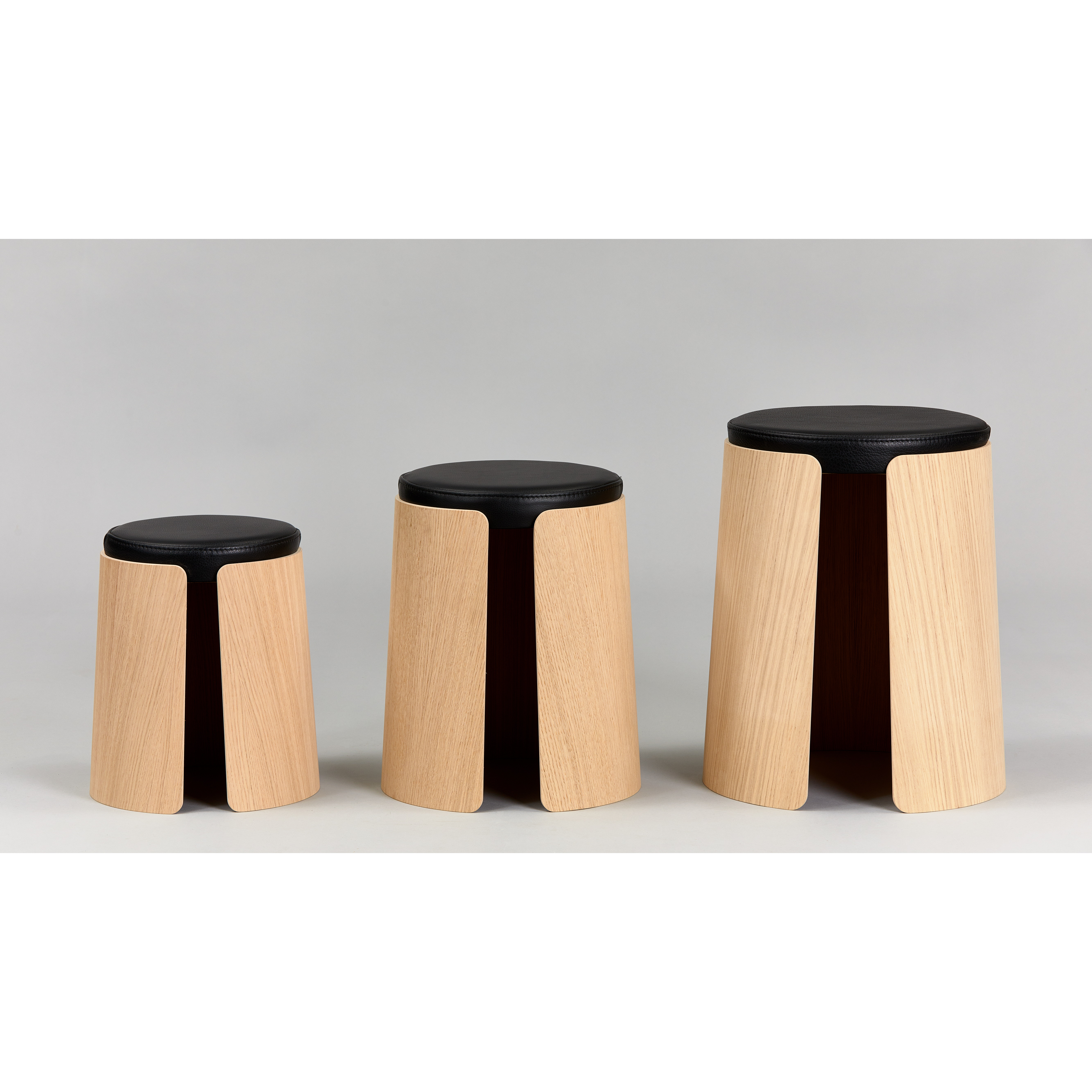 Taburetten kommer i: Eg olie eller Eg sæbe og kan fås med stof eller læderhynde.