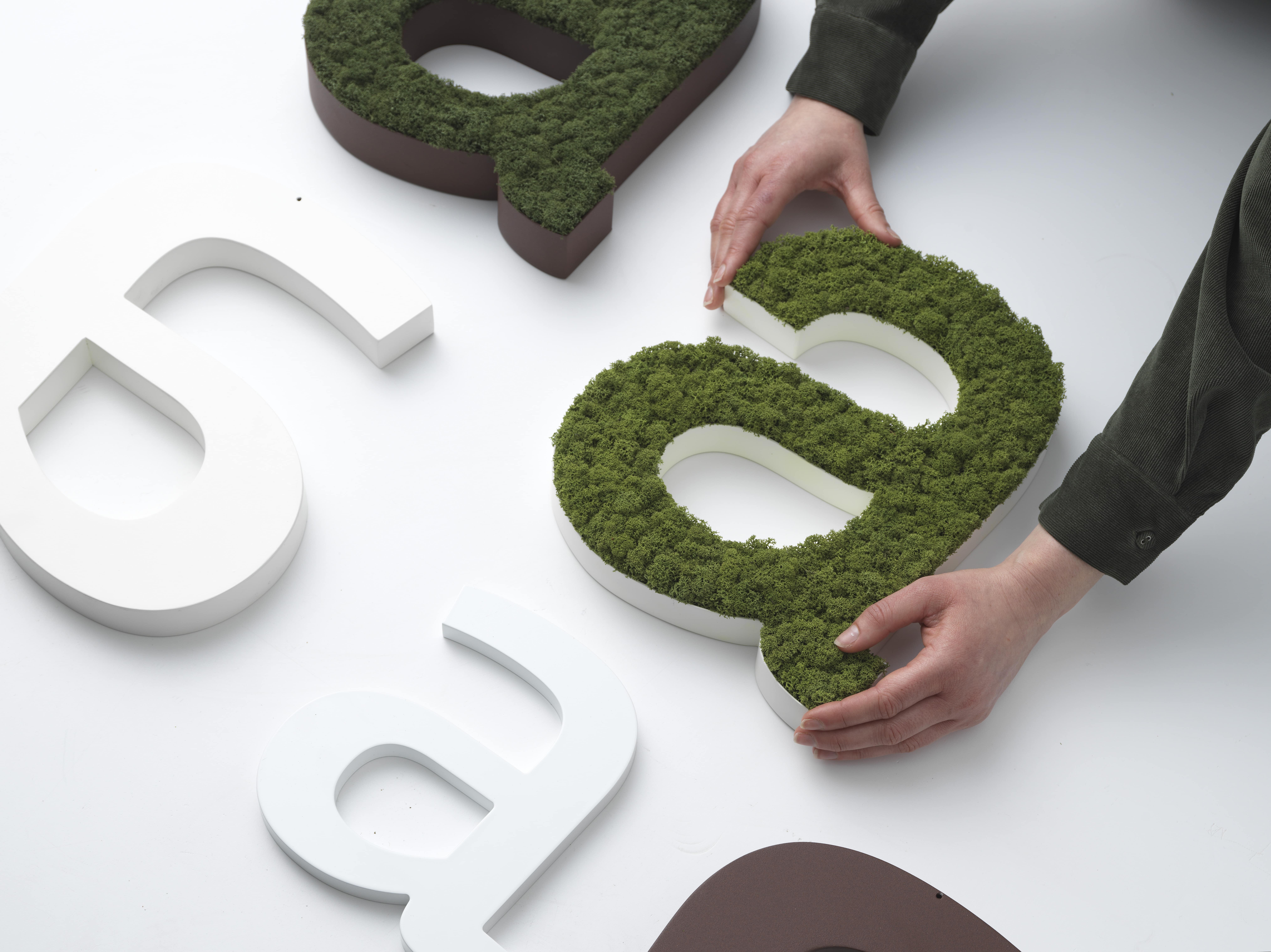 Få lavet firmalogoet i et mosmesterværk og skab et blikfang og akustik, de fleste vil kunne huske. Der kan vælges en form i MDF med rensdyrmos i baggrunden eller brevramme i aluminium med fyld af rensdyrmos.