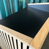 De skrå sider giver perfekt plads til noter, laptop eller tablet, hvilket er skjult for publikum.