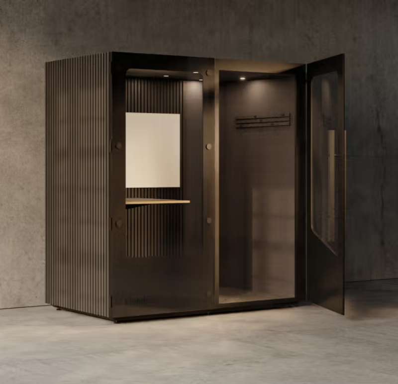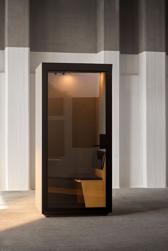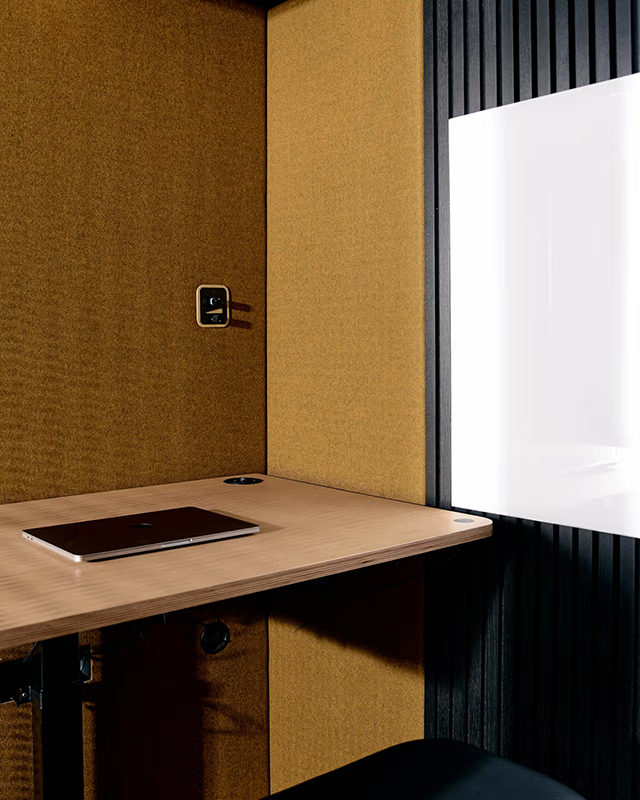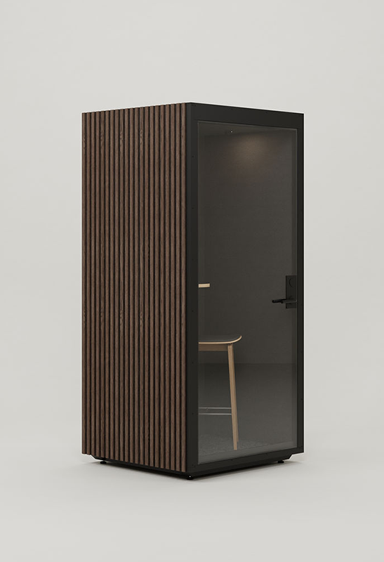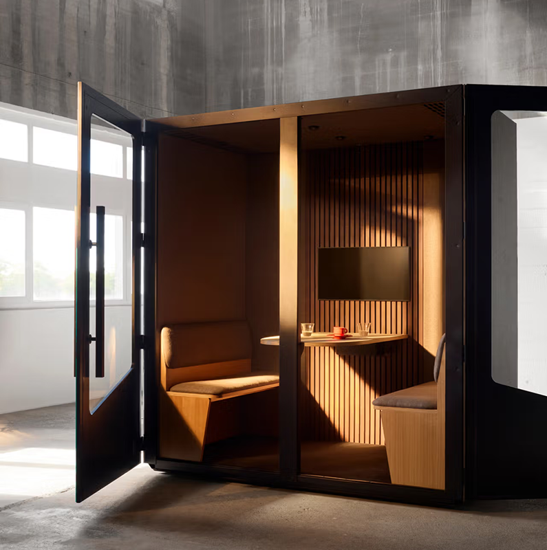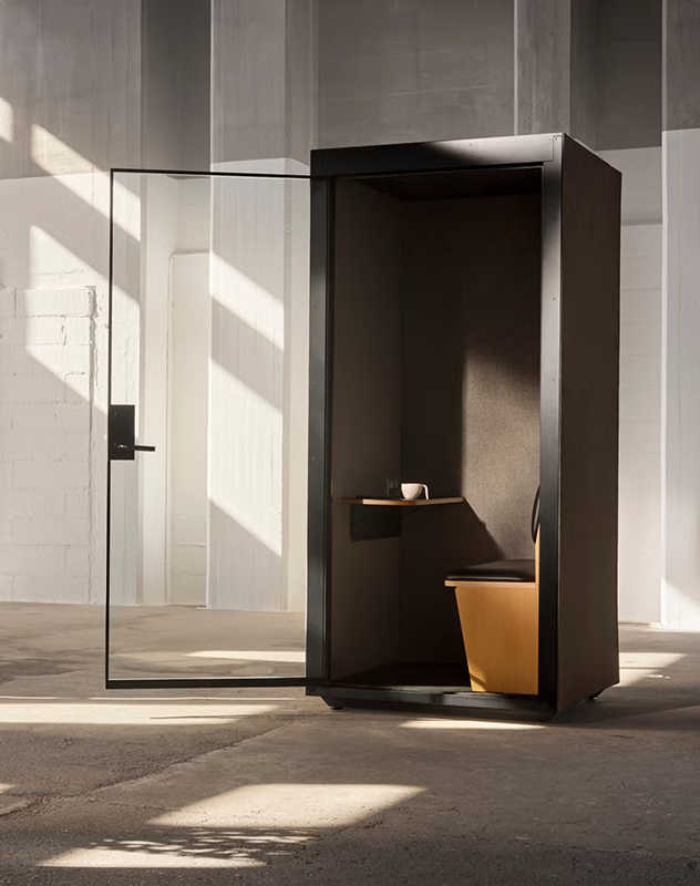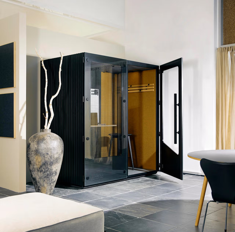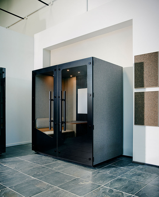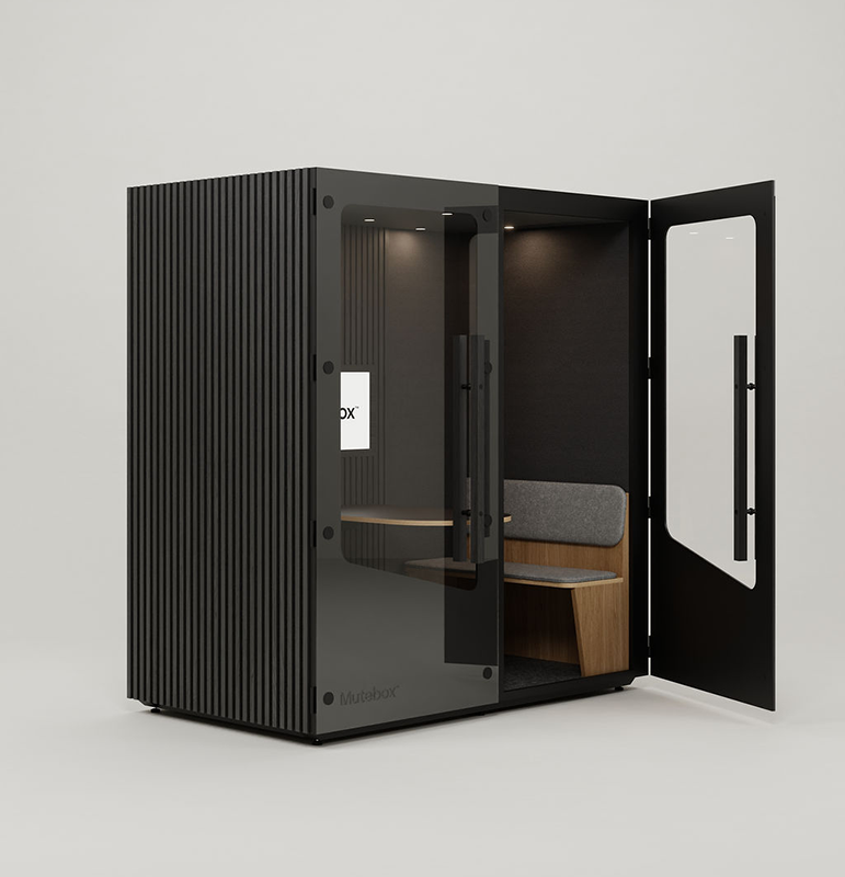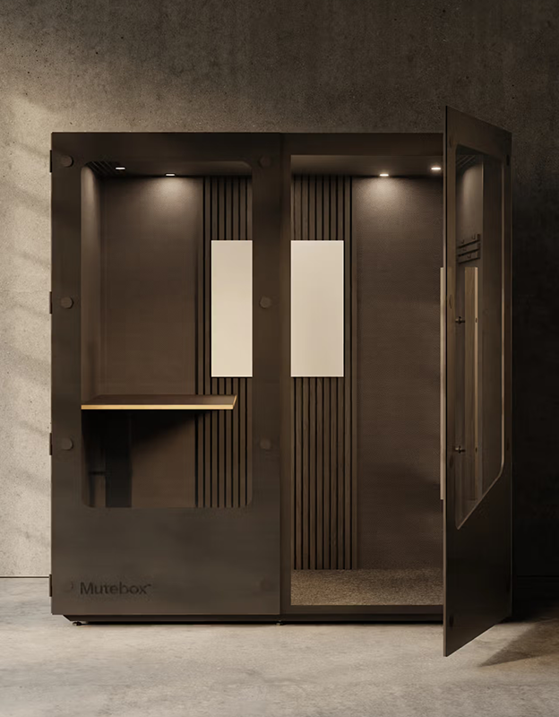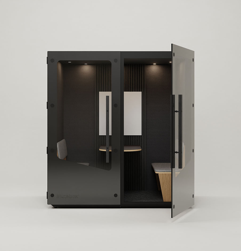 Mutebox er en fleksibel mødeboks til kontor, hvor I får ro til samtaler, onlinemøder og fordybelse i jeres lokaler. Uanset om behovet er korte opkald eller længere møder, skaber boksen et afskærmet miljø med høj komfort og effektiv støjdæmpning.