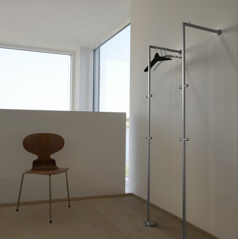 Stumtjener til væg fås i børstet eller poleret stål eller hvid/sort lak med poleret stål.