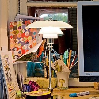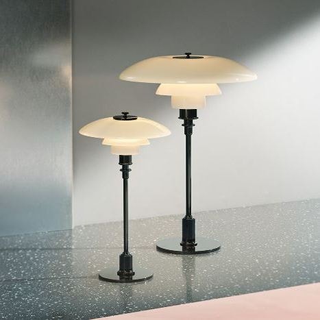 Poul Henningsen designede 3-skærmssystemet allerede i 1925-1926, hvor PH i samarbejde med Louis Poulsen tegnede de første lamper. Gennem hele sit liv søgte PH at skabe det blændfri lys, rette lyset hen, hvor der var brug for det og skabe bløde skygger med glødepæren som lyskilde. PH designede således ikke blot en lampe, men et helt system, og der blev igennem årene produceret omkring tusind forskellige modeller. Glaslamperne skabte udover det nedadrettede lys også lys til rummet. PH var en af de første, der beskæftigede sig videnskabeligt med lys og brugte som udgangspunkt den logaritmiske spiral. Med opbygningen omkring den logaritmiske spiral opnåede han en jævn fordeling af lyset over hele glasskærmens kurve, og denne jævne fordeling af lyset sammen med den diffuse refleksion gennem glasset gav mulighed for at kontrollere lampens blænding og skyggedannelse. PH 2/1 bordlampe består af en overskærm på ca. 20 cm, men her er brugt underskærmene fra den model, der hed 1/1.
