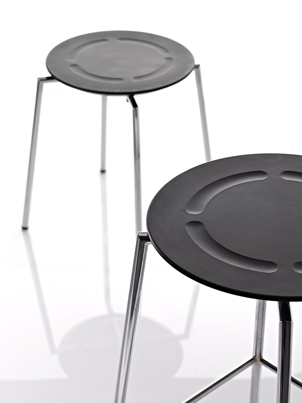 Pure taburetten er let og behagelig at sidde på. Sædet er lavet af purgummi, som er et robust og slidstærkt materiale med en behagelig overflade, der giver en blød og god siddekomfort, der former sig efter kroppen, og gør taburetten ergonomisk og behagelig.