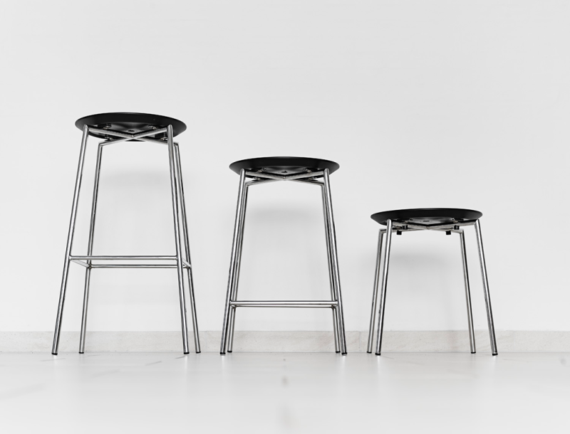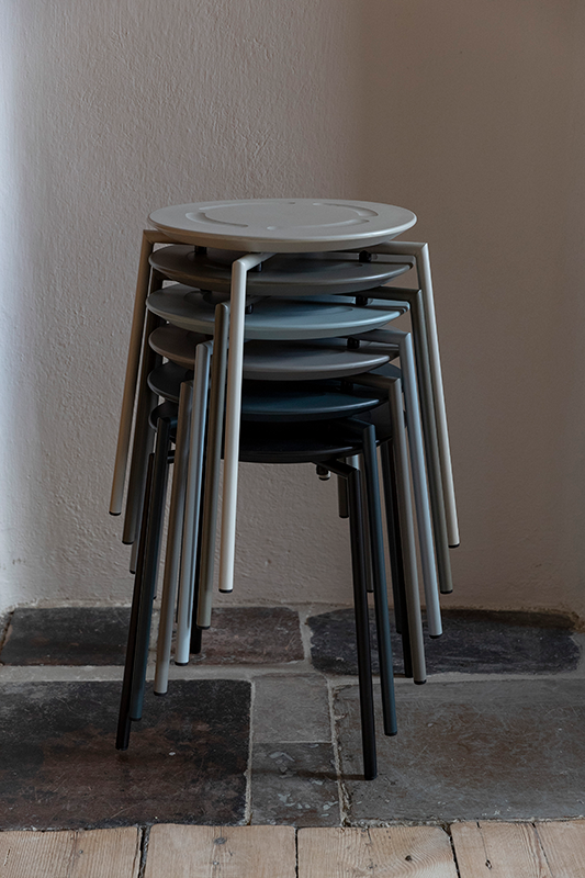 Udover at være nem at rengøre, dæmper materialet også lyden, så taburetten ikke larmer så meget, når den skubbes over gulvet. Pure-serien er derfor velegnet til bl.a. kantiner, små møderum, caféer og opholdsrum. Fås i flere farver og forskellige polstringer.