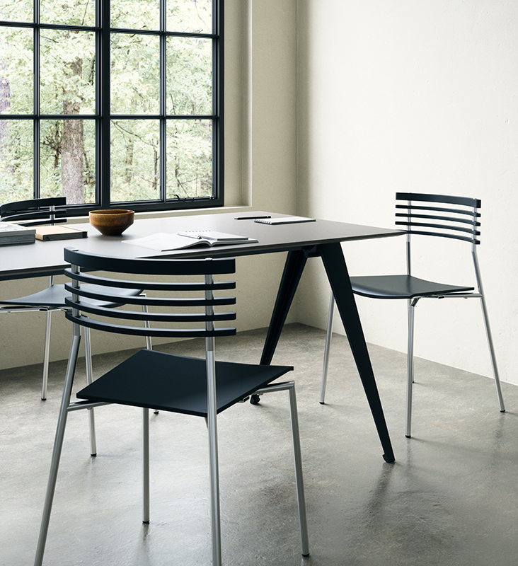 Rail armstol er en elegant og tidløs stol med god siddekomfort. Designet er luftig og let og tager ikke fokus fra rummet. Stellet er lavet af præcisionsstålrør som findes i varianterne sort, alu og krom. Sæde og ryg er lavet af formspændt træ og findes i varianterne klarlakeret birk og sortlakeret ask.