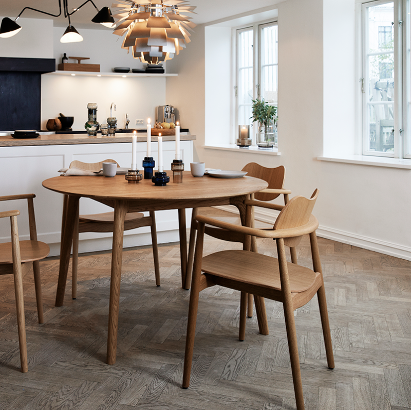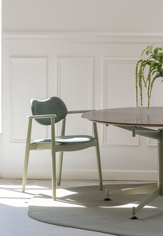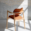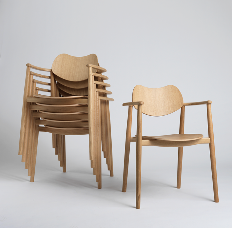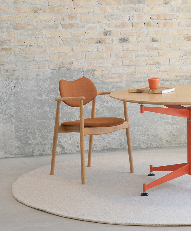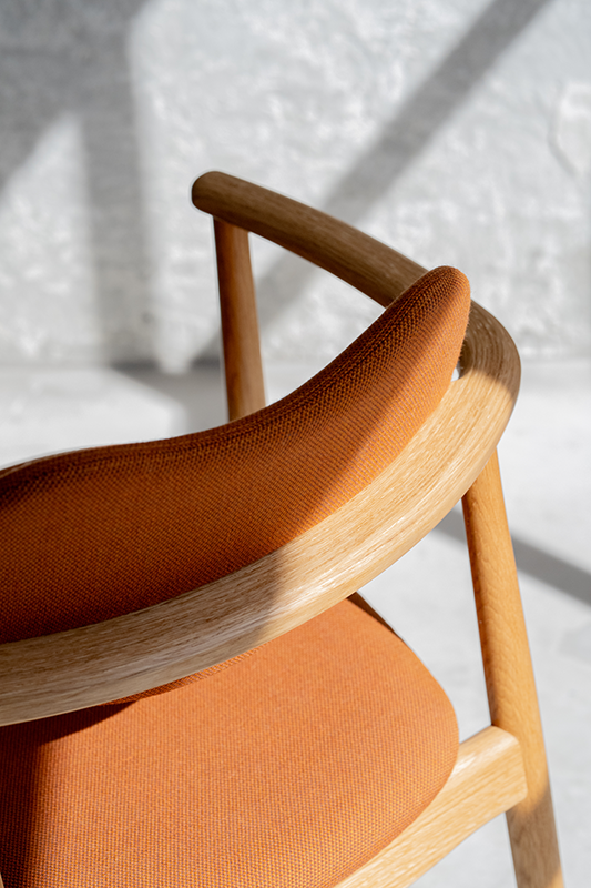 Regatta er en robust og stilren stol i massivt egetræ eller bøgetræ, designet med fokus på både kvalitet og holdbarhed. Stolen har integrerede armlæn, et behageligt sæde og en solid stelkonstruktion, hvor proportioner og detaljer er nøje afstemt.