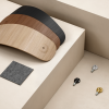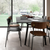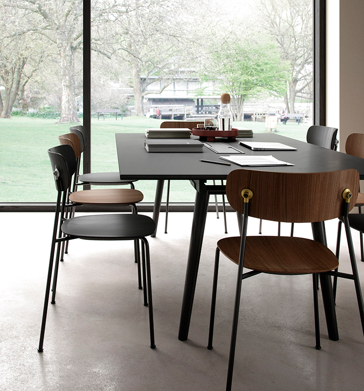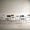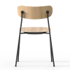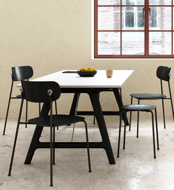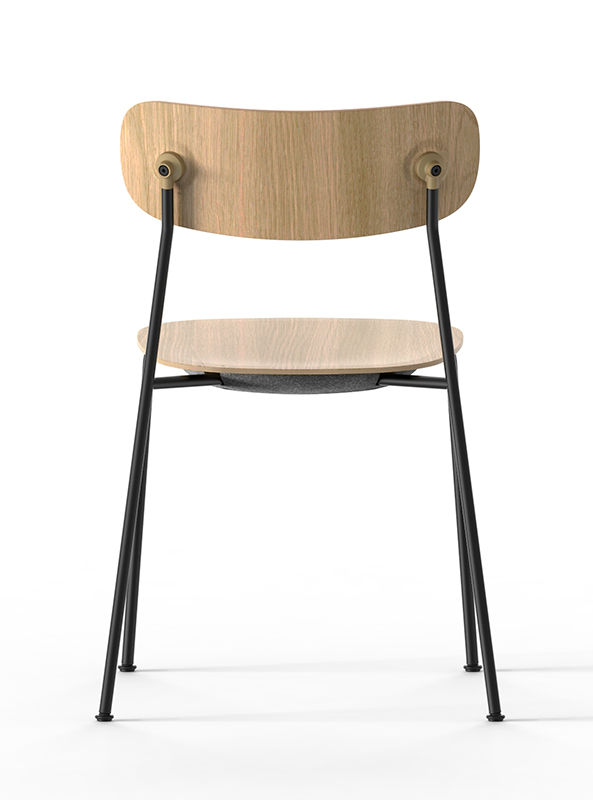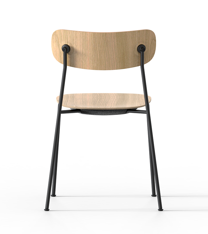 Ryg og sæde er lavet i FSC-certificeret egetræsfinér og fås i farverne eg, røget eg og sort. De findes desuden i fuldpolstrede versioner. Stellet er lavet i 50% genanvendt stål og fås i farverne sort og zink.
