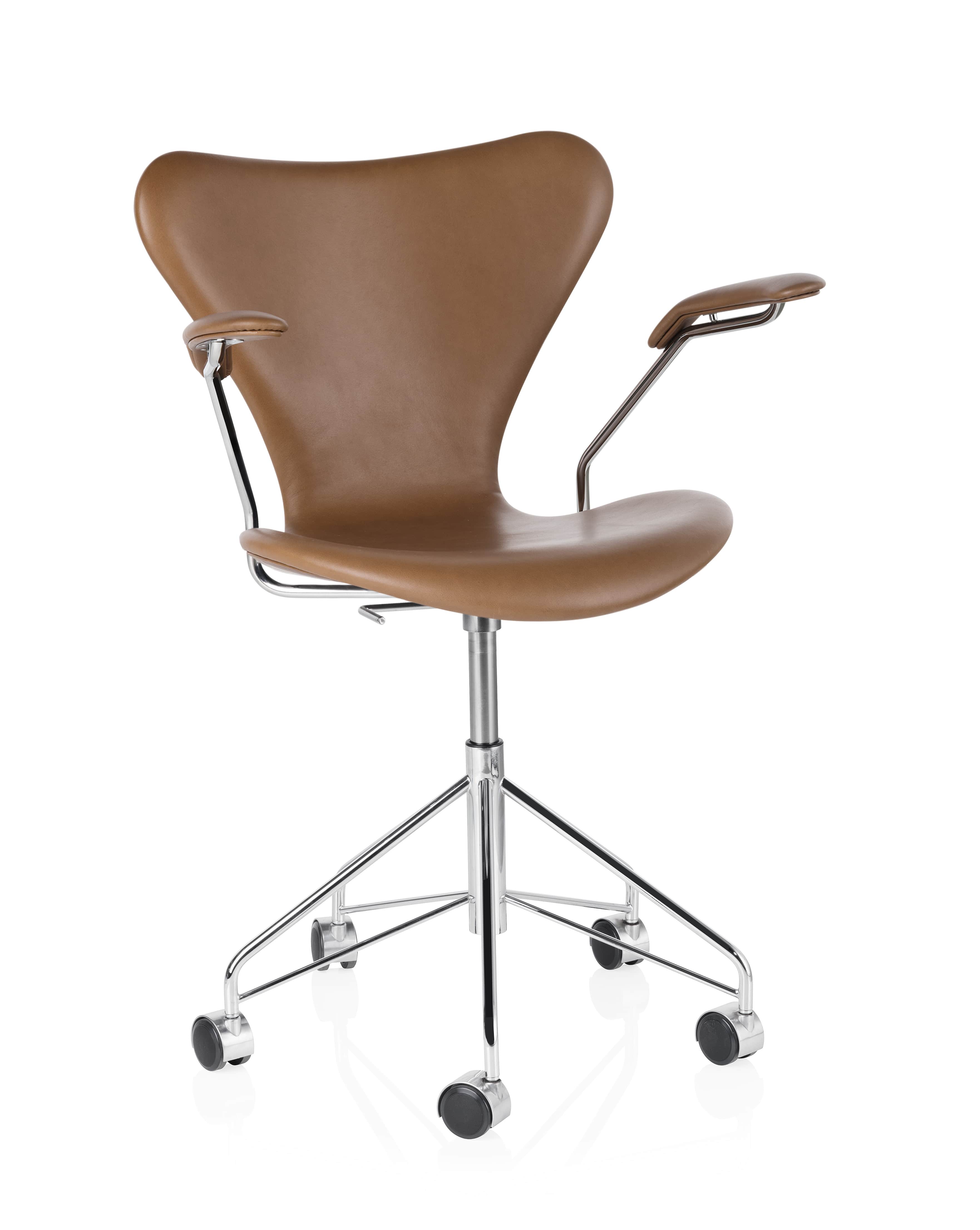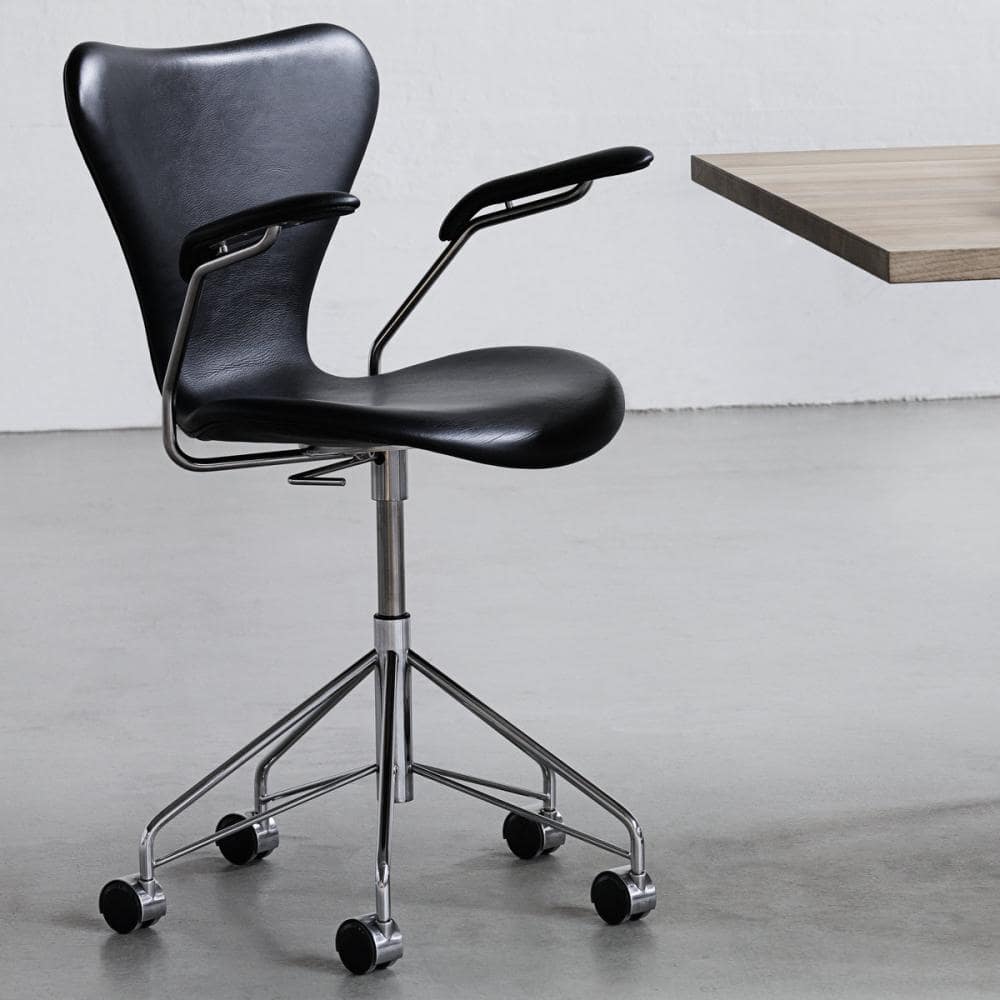 Denne udgave af Syverstolen er udstyret med drejestel og bløde hjul, der ikke ridser gulvet, og som egner sig til hårde gulvbelægninger. Serie 7™ føres i et stort sortiment med mange farver og træsorter, som til enhver tid matcher aktuelle indretningstrends. Fås med eller uden polster og med eller uden armlæn. På andres sider finder du Serie 7™ med 4 ben og barstol i 2 højder.
