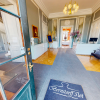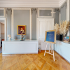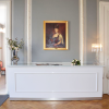 Denne smukke receptionsskranke er produceret i højglanslakeret træ, og skranken er monteret med lister, som passer til paneler, fyldningsdøre m.v.