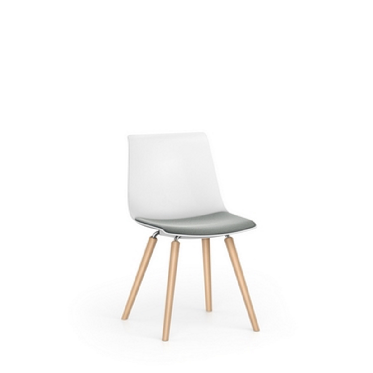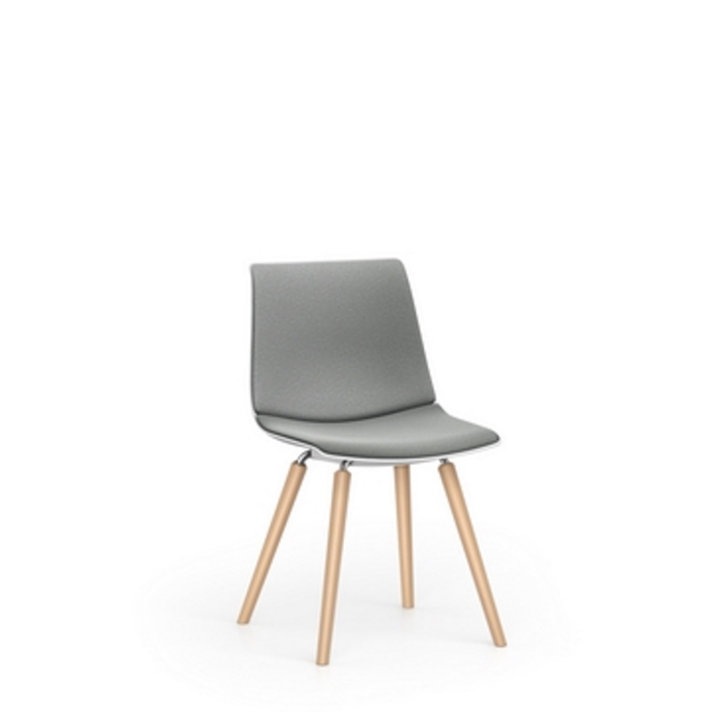 Fin lille stol med træben. Kan betrækkes med mange typer stof og læder, det er altid eg træben på stolen. Stolen kan anvendes såvel til indretning af café, som til kantine eller et lille mødelokale.