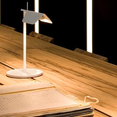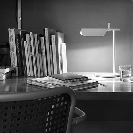 Designet af E. Barber & J. Osgerby i 2011. TAB T bordlampe giver direkte belysning med justerbar hoved. Trykstøbt aluminium hoved, led og bund. Fås i sort eller hvid, med LED.