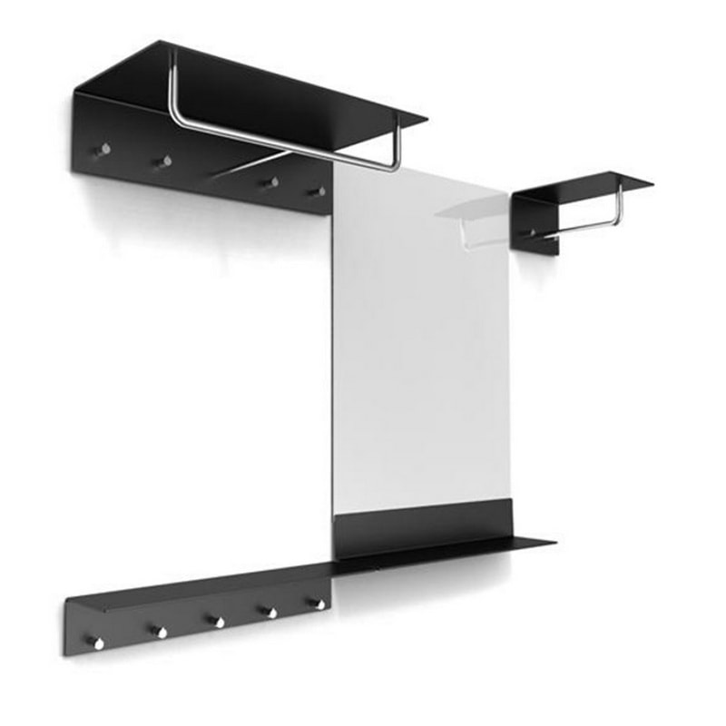 Unu Hattehylde er klassisk og dekorativ. Hattehylden fås med eller uden bøjlestang og med enten 2, 4 eller 6 kroge. Hattehylden er produceret i aluminium og findes i sort og hvid. Produkterne kan sammensættes i et utal af kombinationer og kun fantasien sætter grænser. Velegnet til garderoben, entreen eller arbejdspladsen.