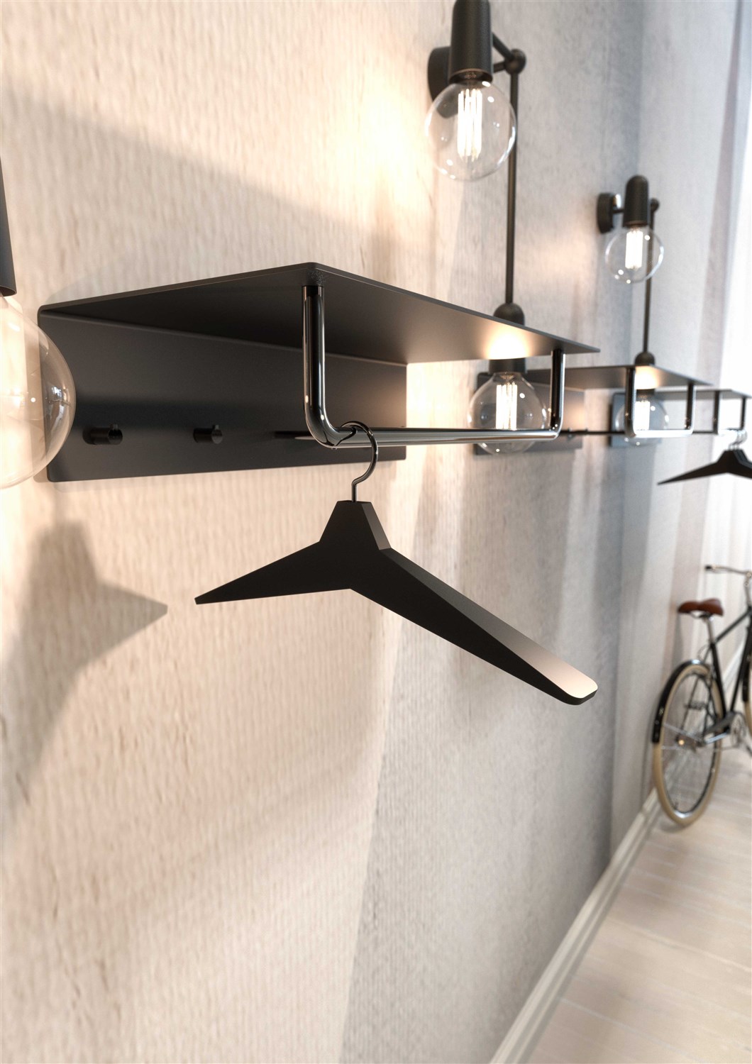 Unu bøjlen egner sig godt til garderobestativerne og knagerækkerne som Frost har produceret. Designeren morten Bønnelycke har skabt en stringent og stram bøjle lavet i sort gummi som gør at tøjet har sværere ved at glide af, hvilket gør den særdeles perfekt til garderoben i reception, venteværelse eller på kontoret.