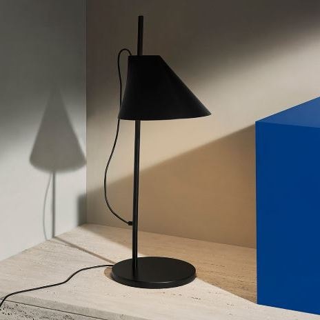 Bordlampen 'Yuh' fra Louis Poulsen har et retningsbestemt, nedadrettet og blændfrit lys. Den smalle åbning i toppen af skærmen giver en stemningsfuld belysning op ad stangen. Lampen tændes, slukkes og dæmpes øverst på standeren. Den indbyggede LED teknologi giver god lyskvalitet og kan dæmpes trinløst fra 100% til 15%. Der er timer-funktion til automatisk slukning, som kan indstilles til 4 timer eller 8 timer. Der er mulighed for indstilling af bestemt lysniveau, når lampen tændes. Fås også som gulvlampe og væghængt lampe.